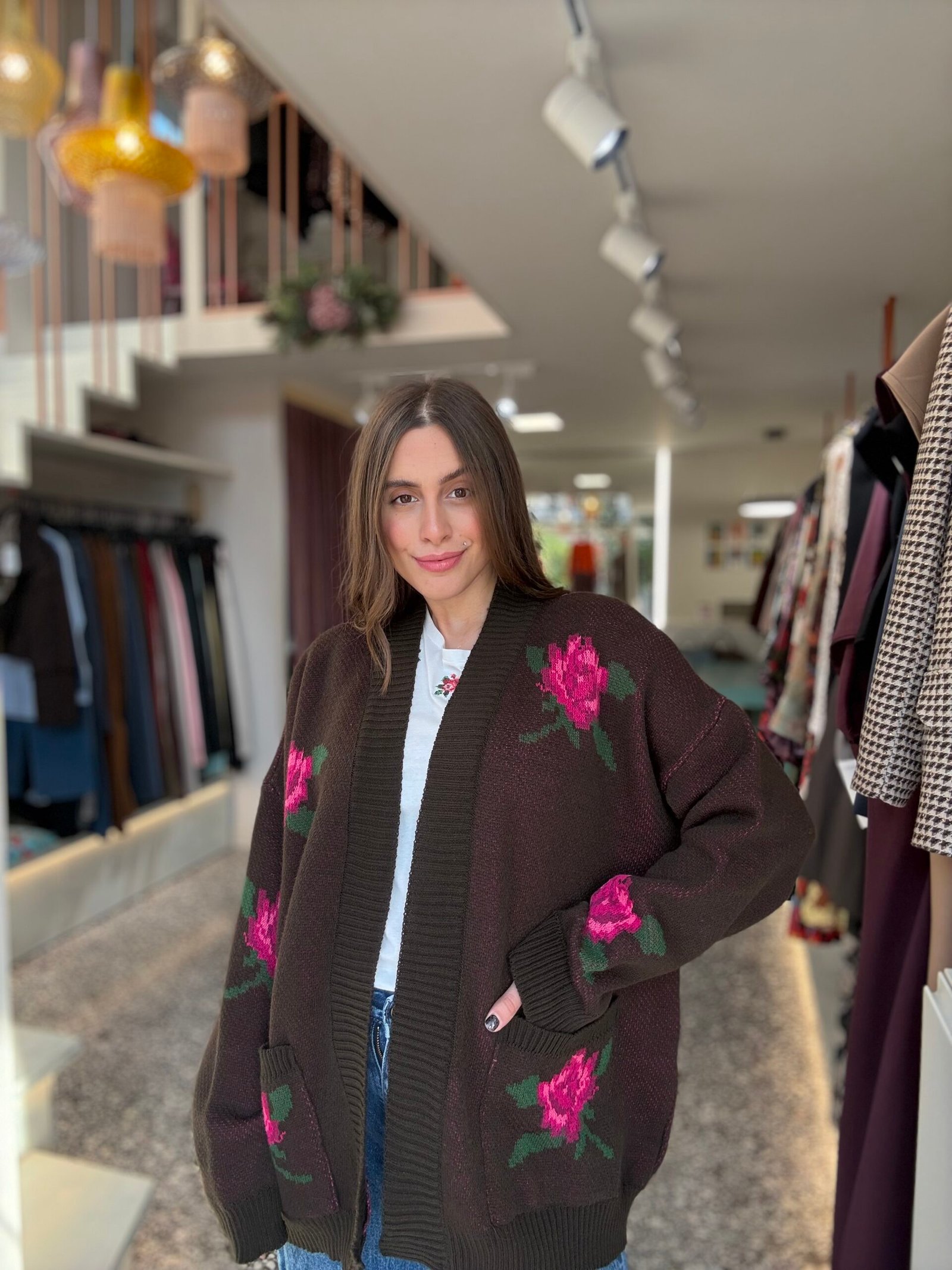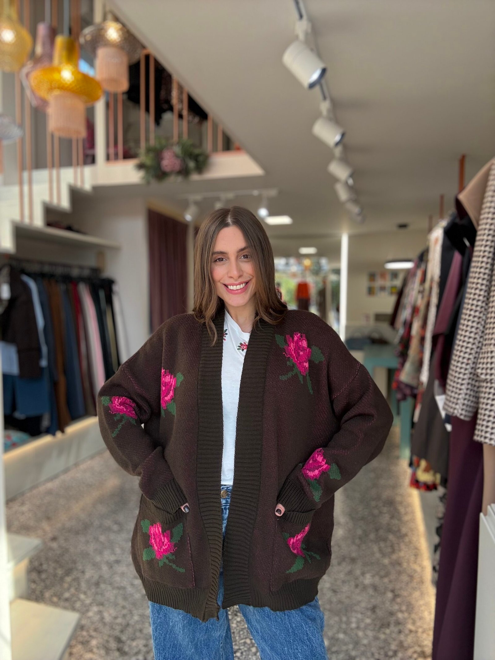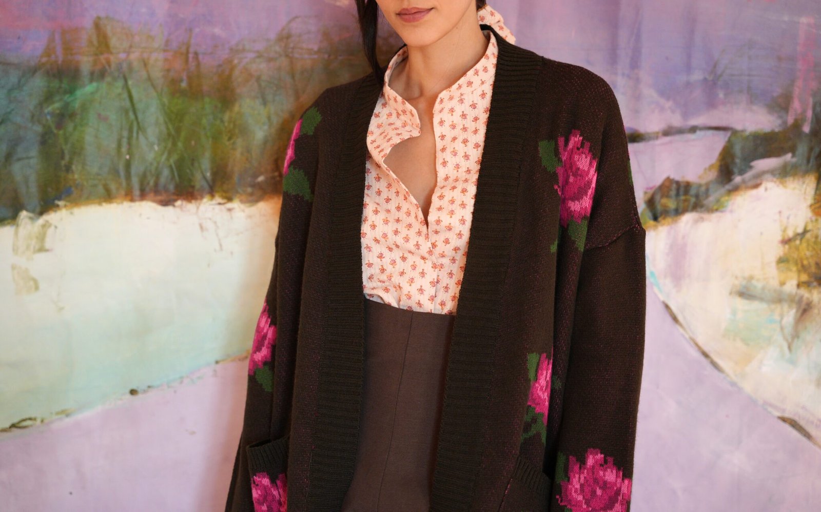 Floral ζακέτα με τα χαρακτηριστικά μας shoushou τριαντάφυλλα.