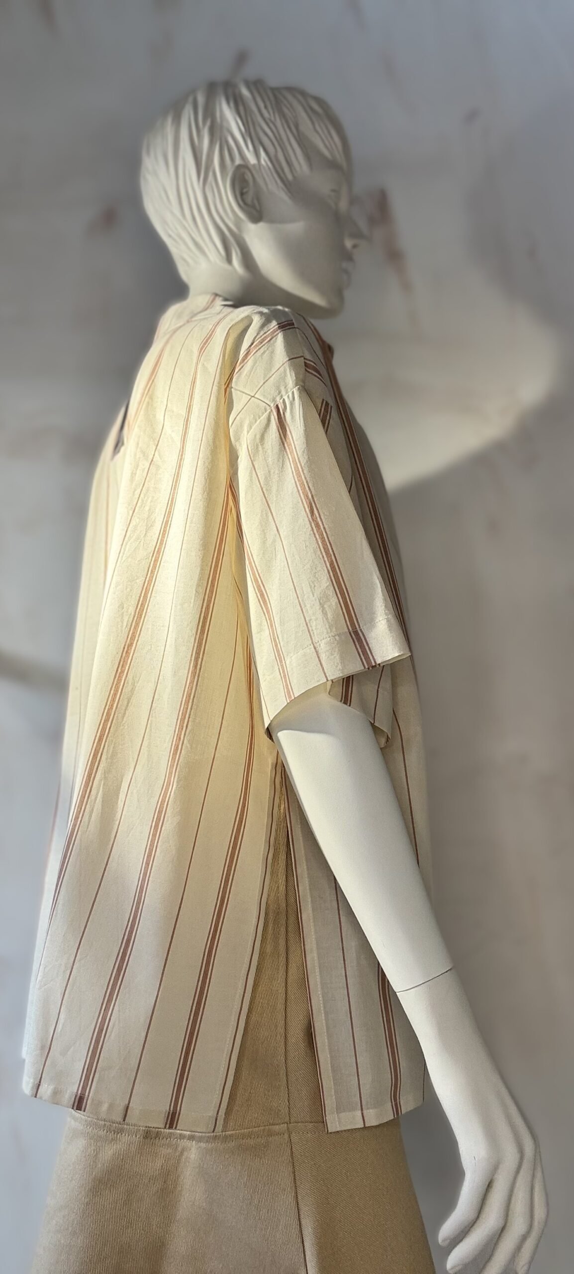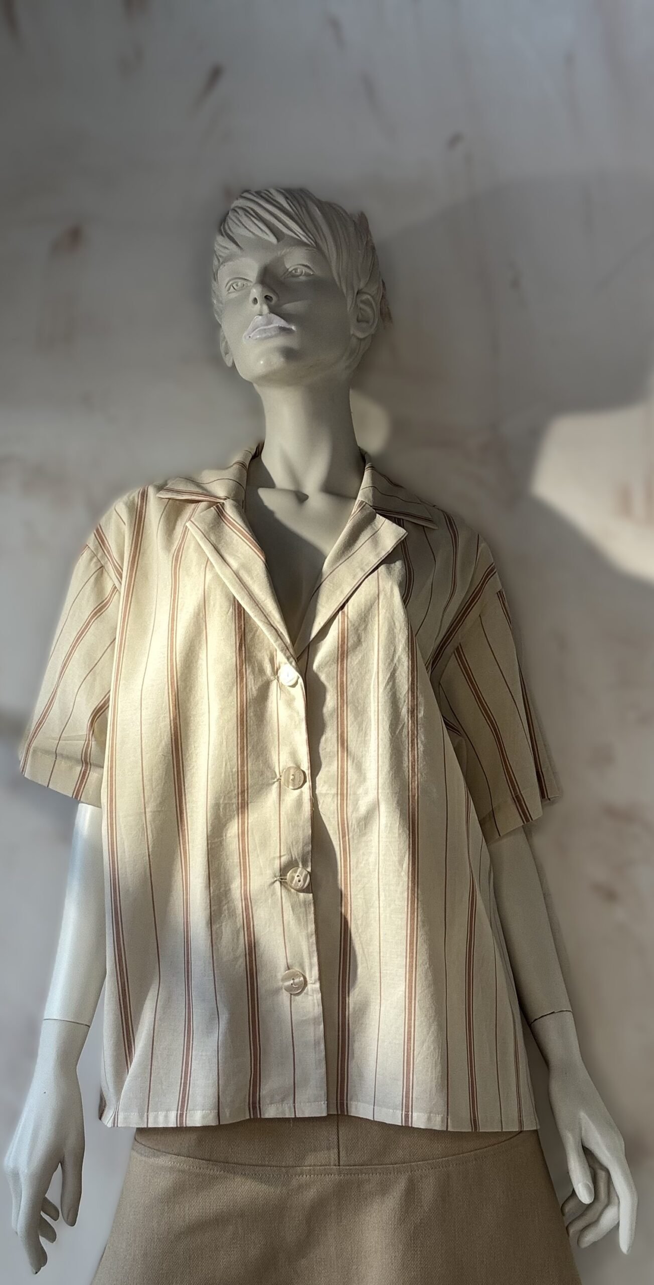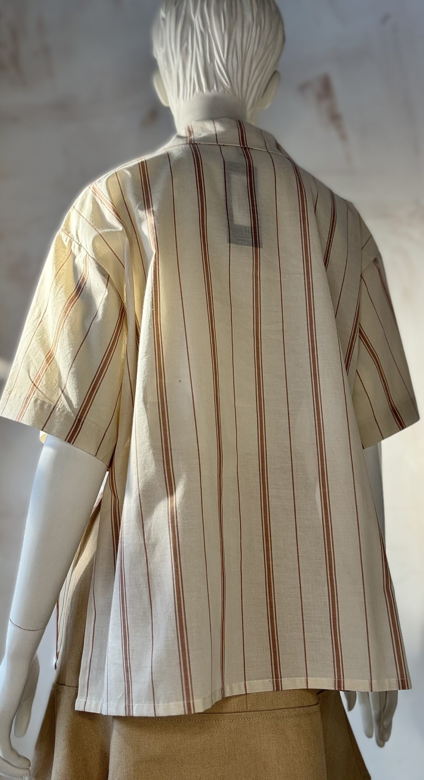 Beige striped short sleeve shirt/CKontova πουκάμισο