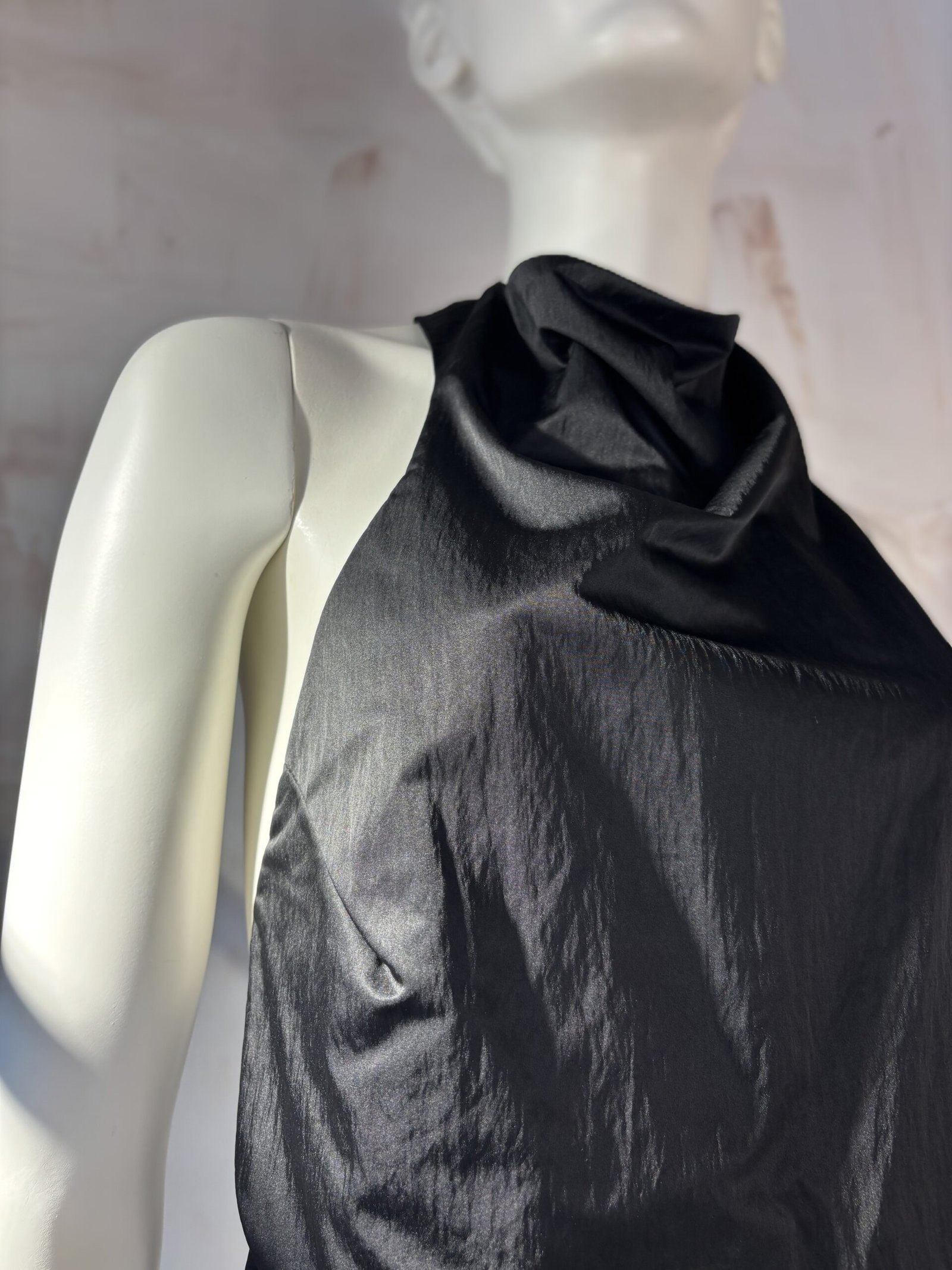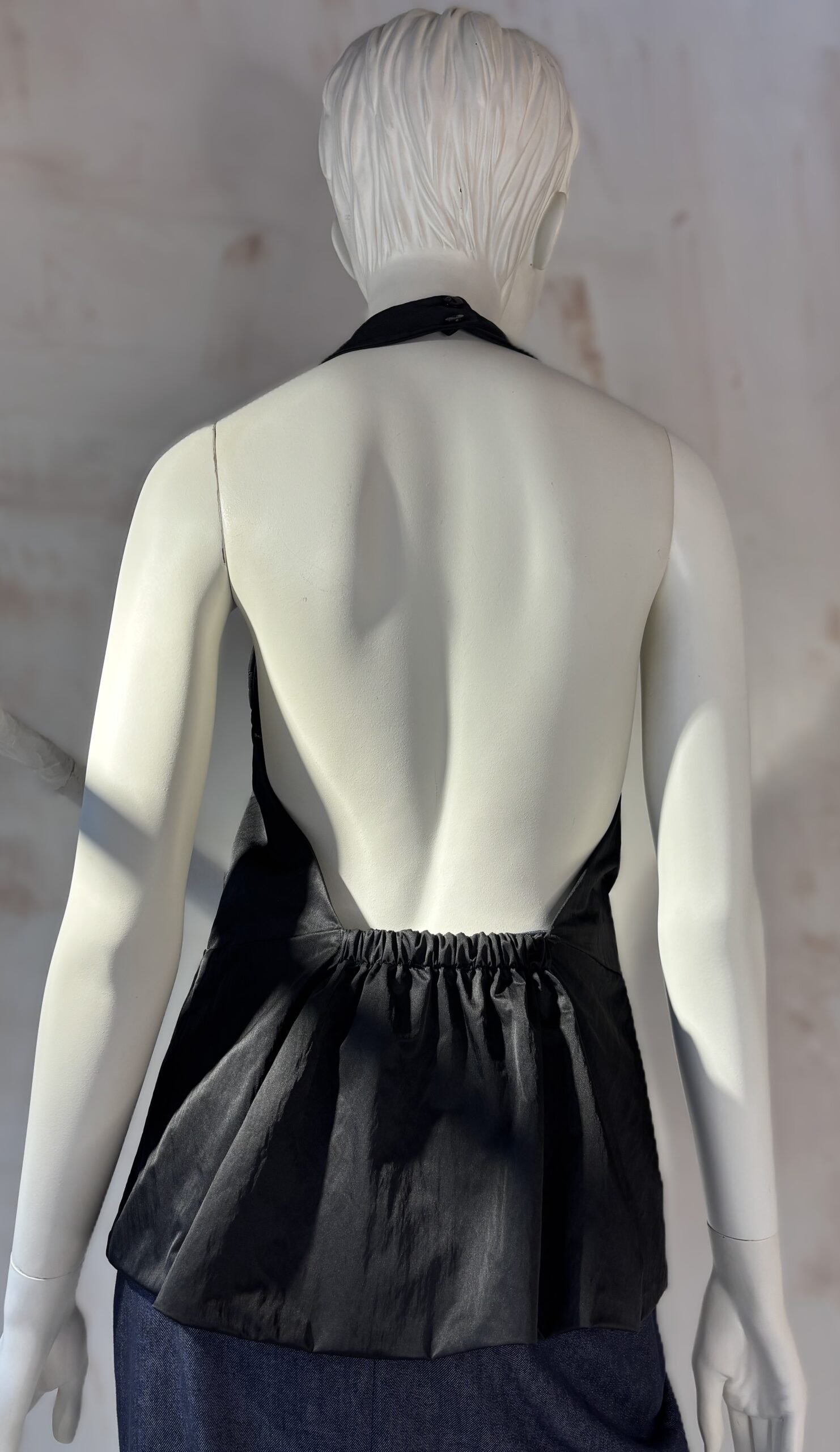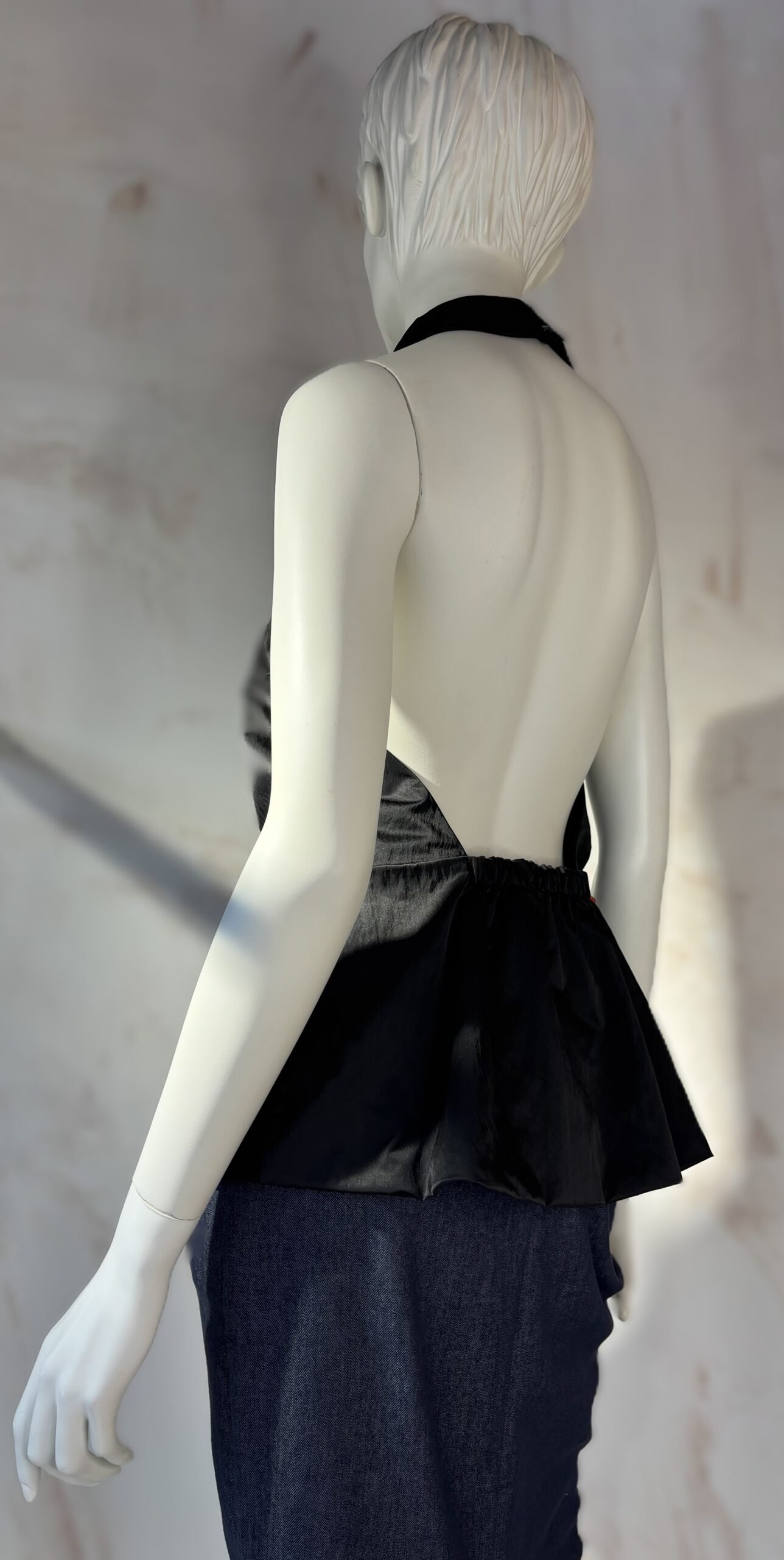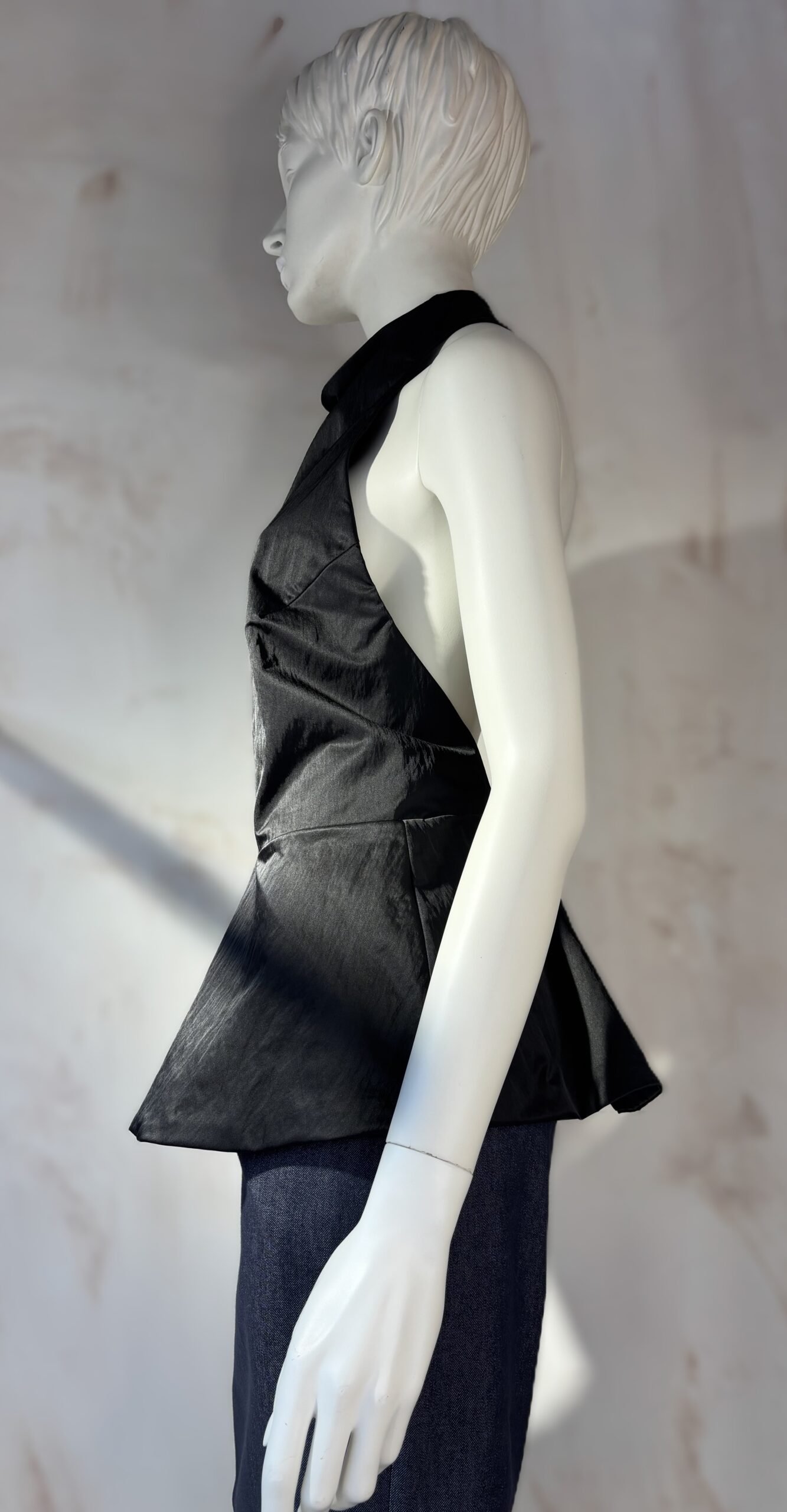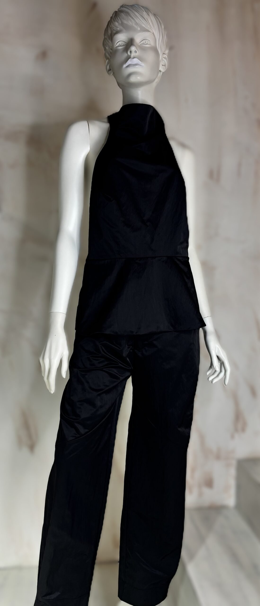 A sleek ckontova halter top designed with clean lines and an elevated, minimal feel. Featuring a high neckline with soft draping, it’s cut in a structured yet lightweight fabric that holds its shape while moving comfortably. The silhouette falls straight with a subtle peplum-like finish at the hem, making it perfect for refined day-to-night styling. Wear it with the matching trousers for a modern set, or pair it with a tailored skirt for understated evening polish.