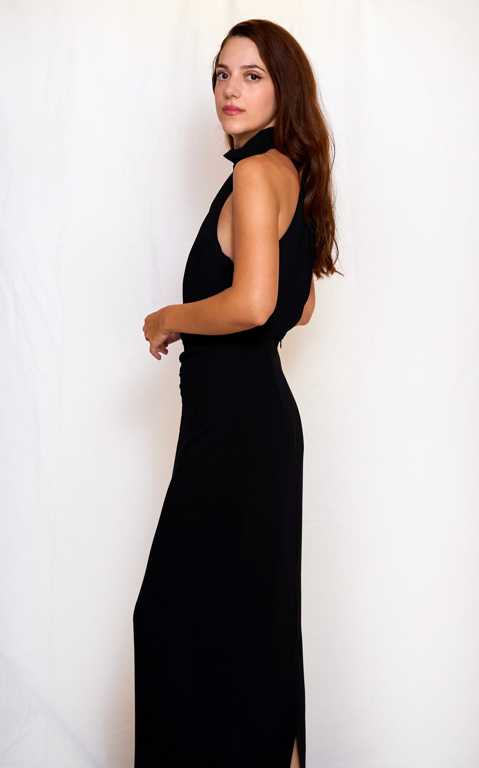 Black halter-neck midi dress/ckontova φόρεμα
