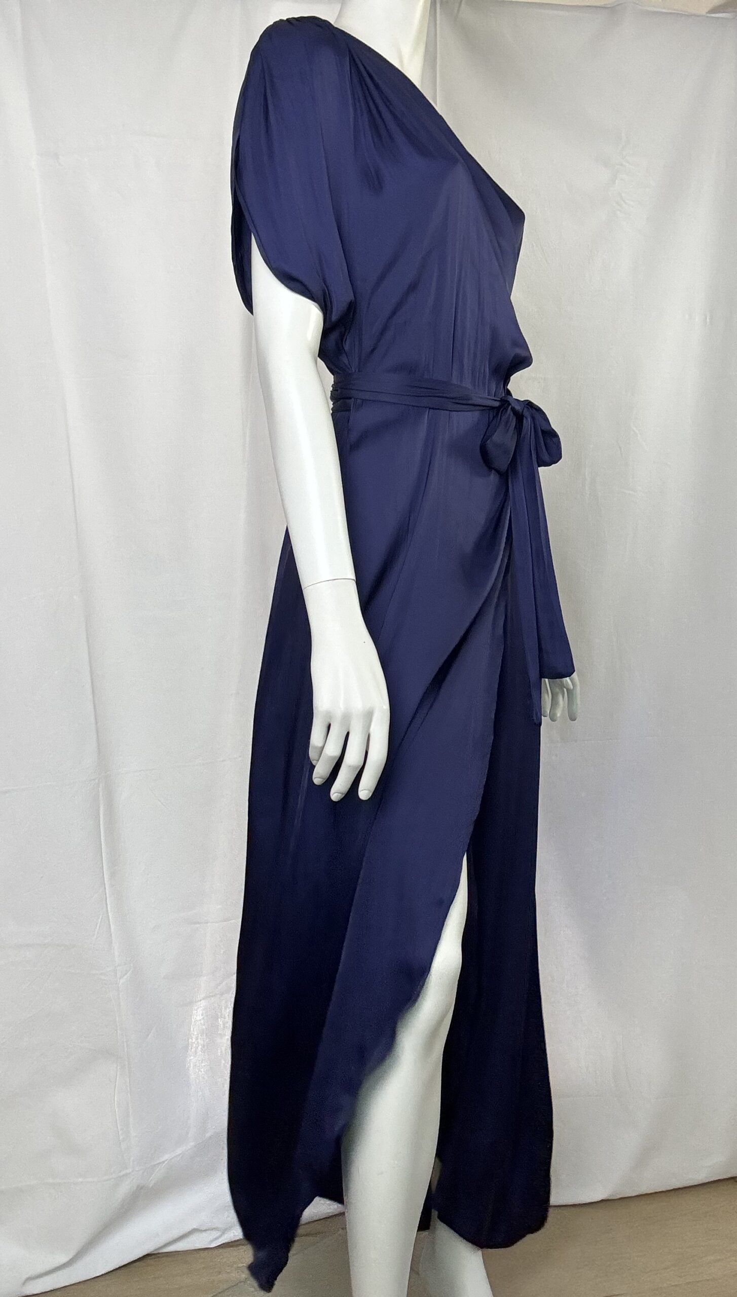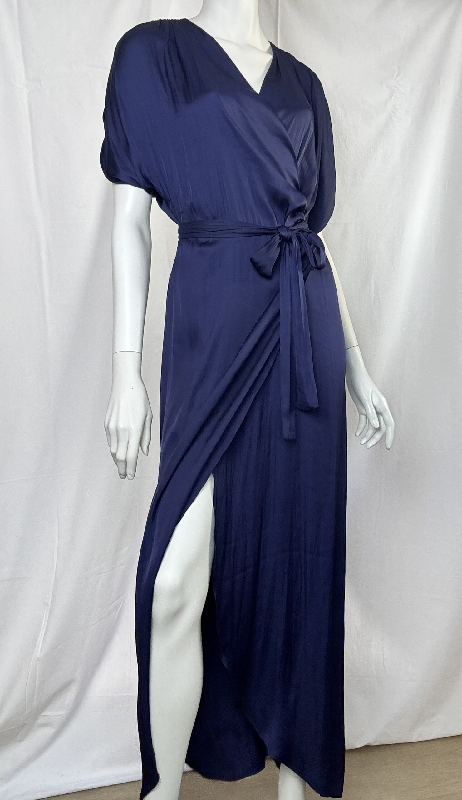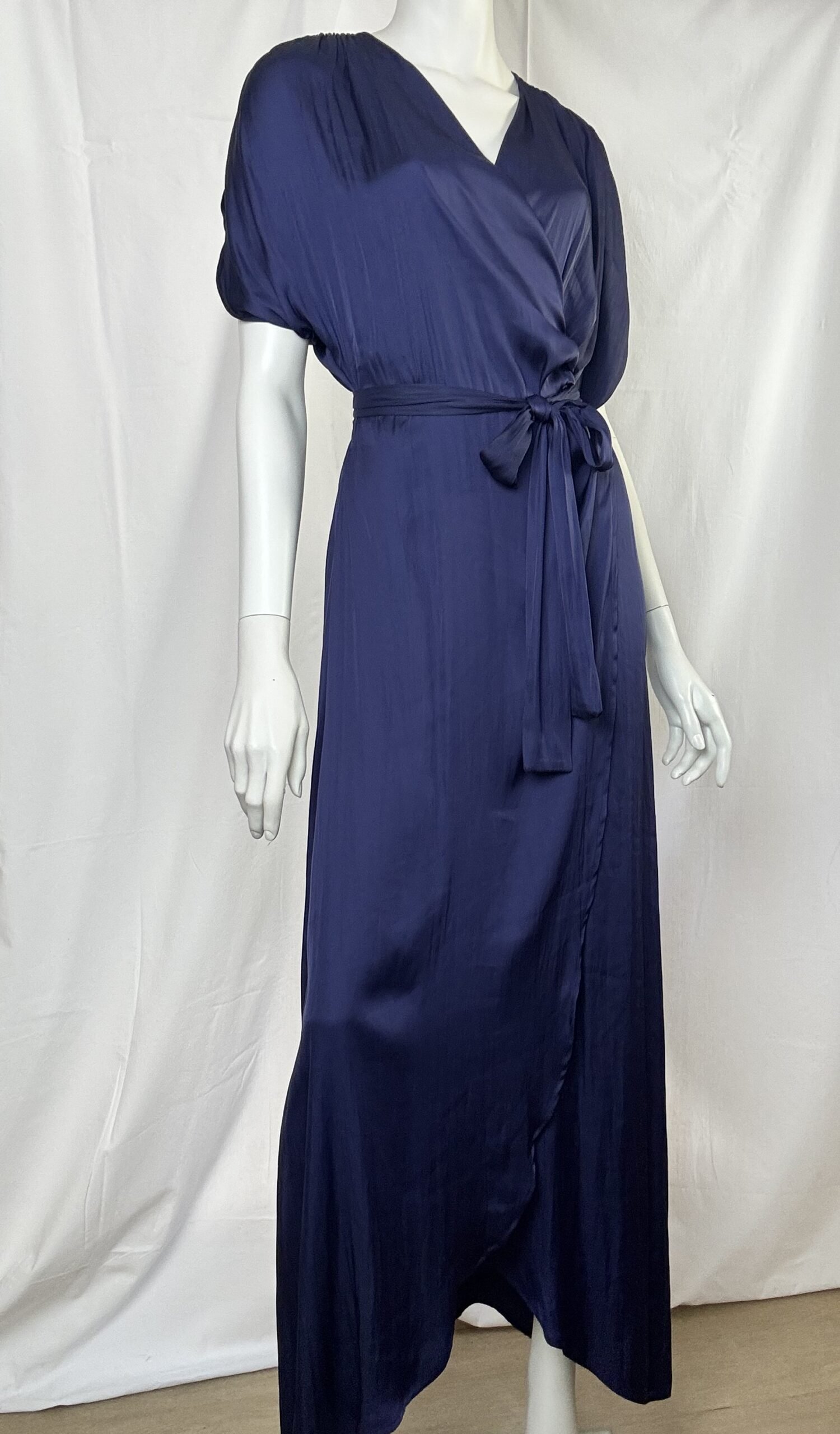 Blue satin ruffled wrap dress/CKontova φόρεμα