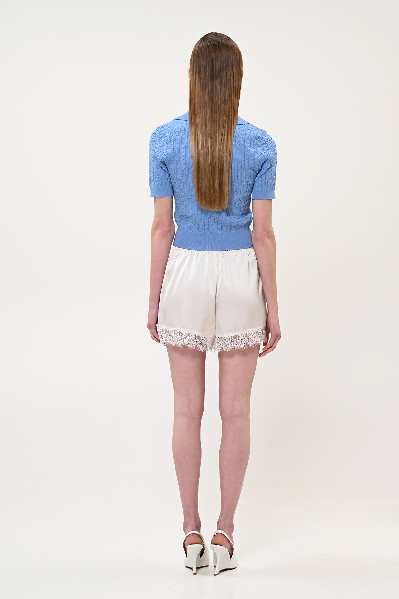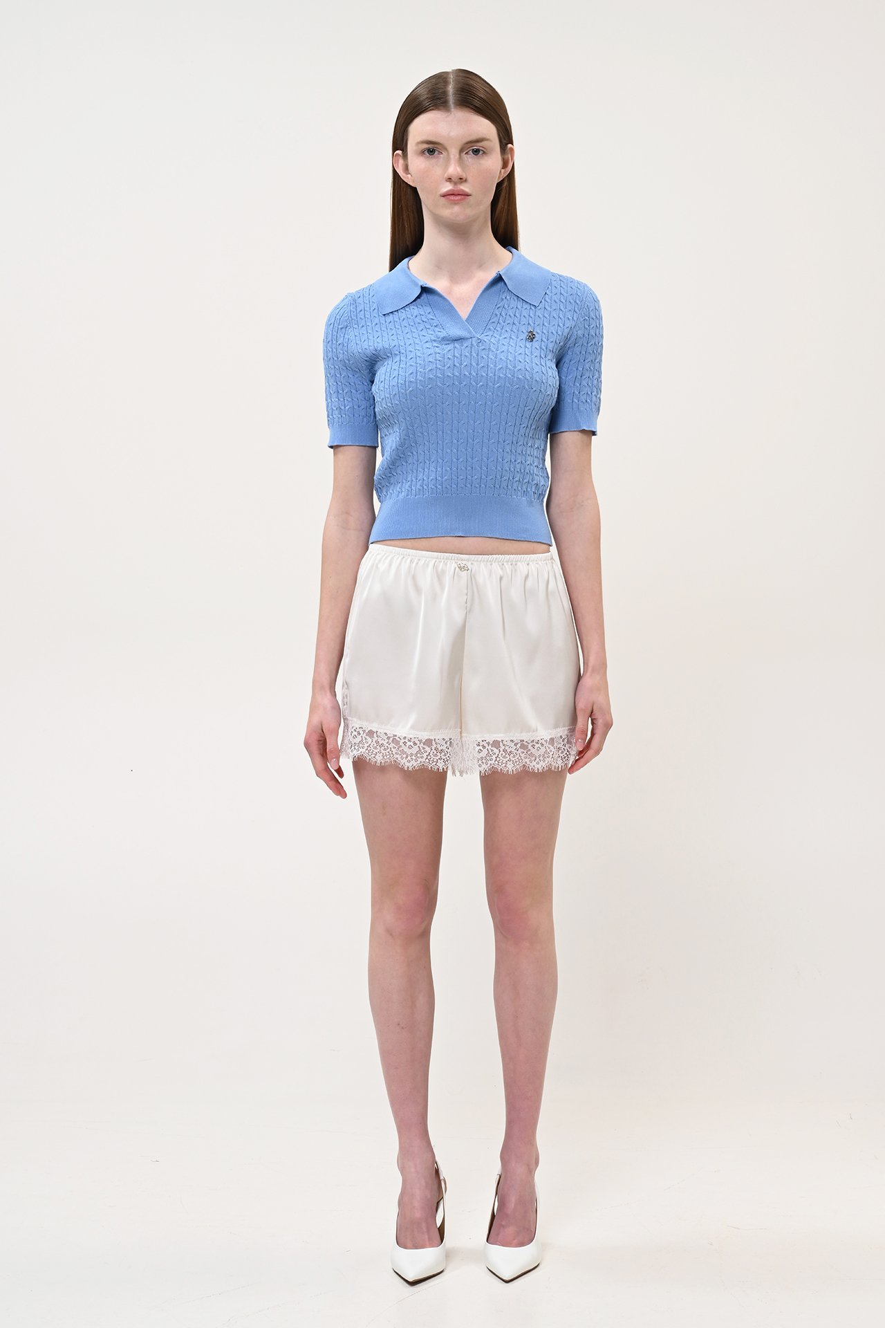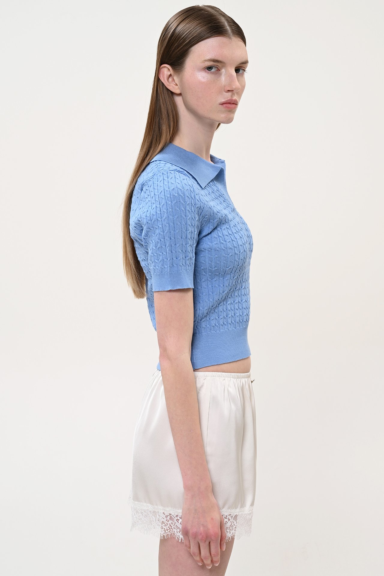 Cable-knit polo sweater (blue)/Boom μπλούζα