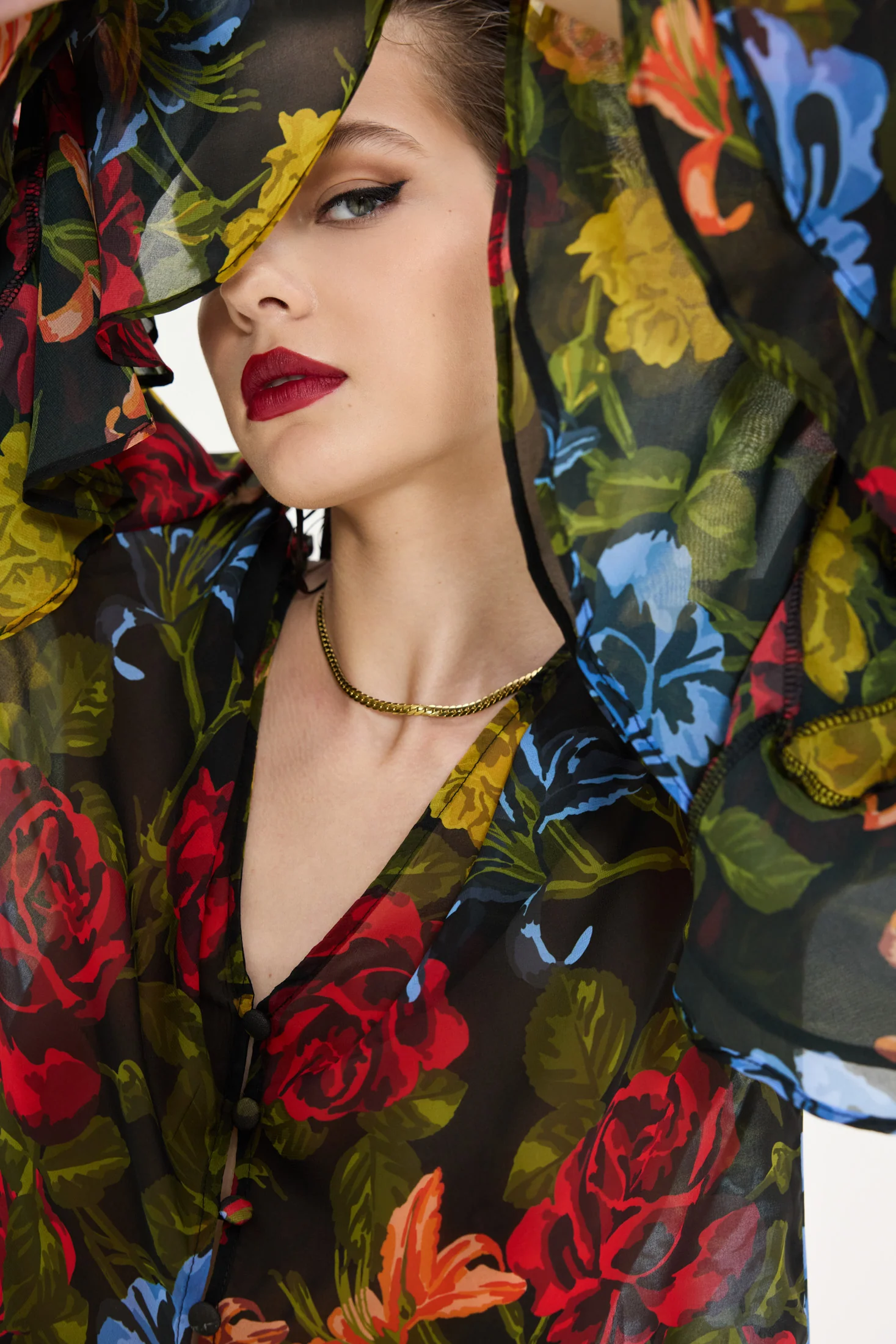• Βολάν στα μανίκια και στο τελείωμα της μπλούζας