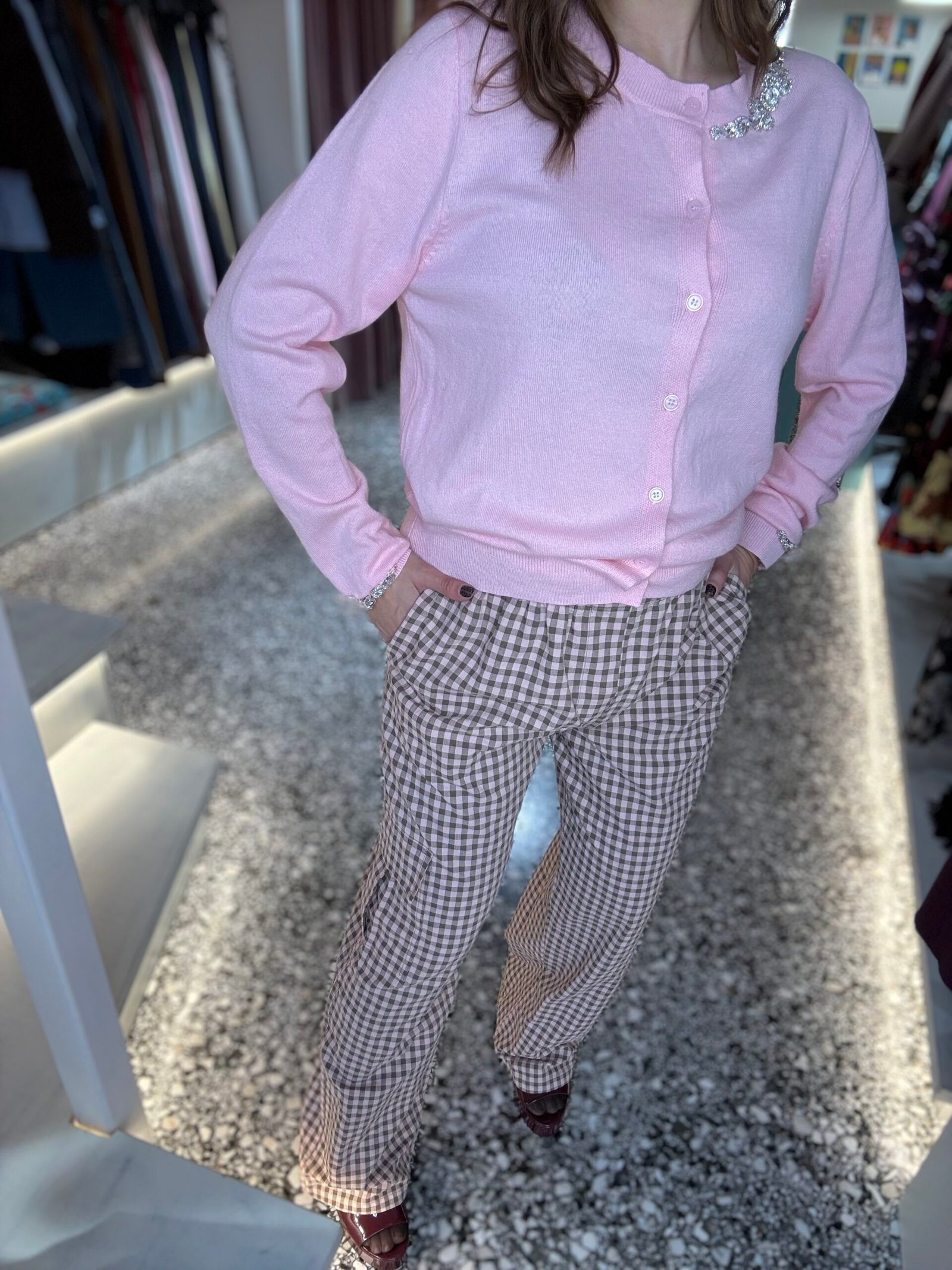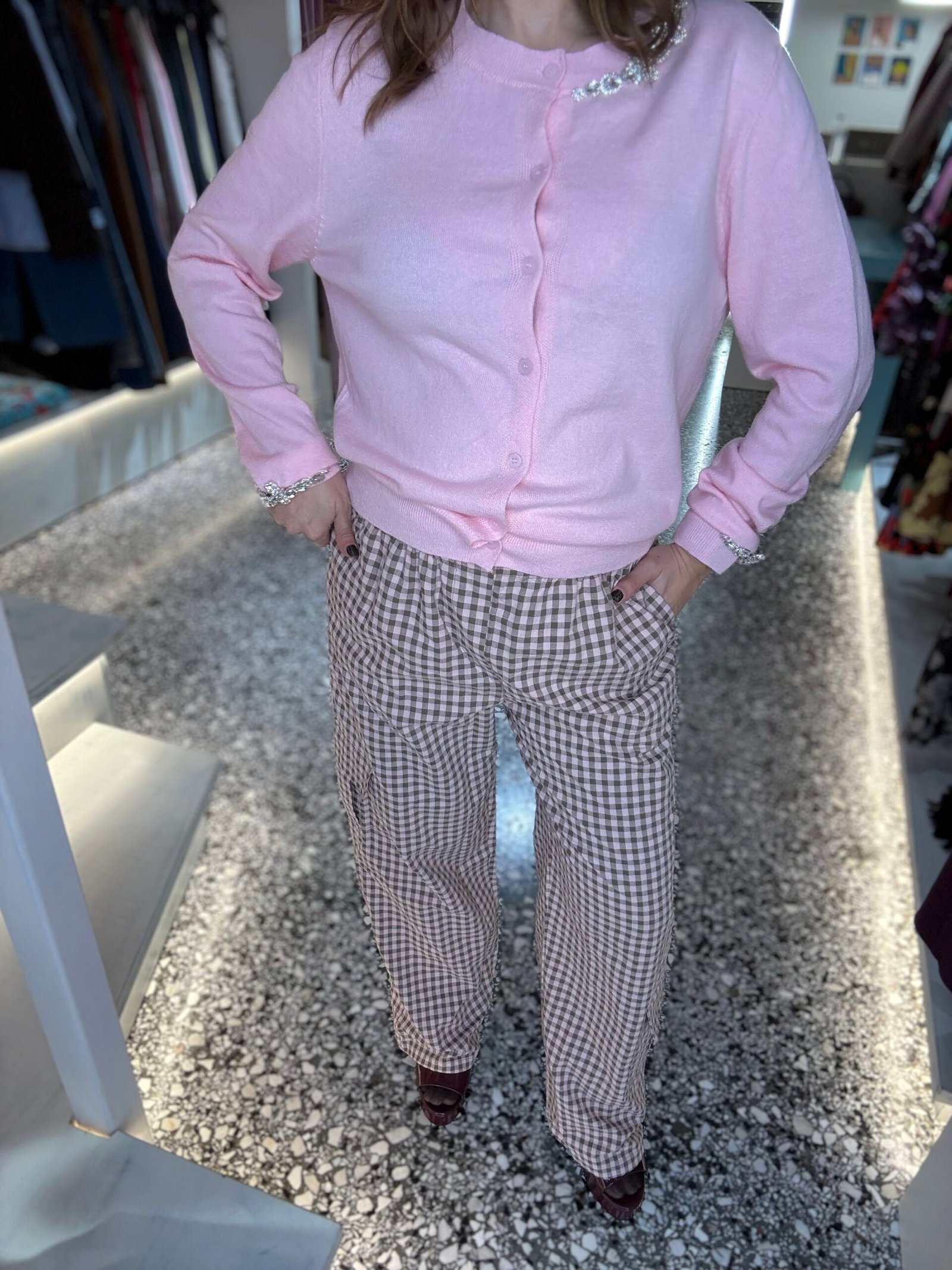 Cargo plaid pants (pink brown vichy)/Milkwhite παντελόνι
