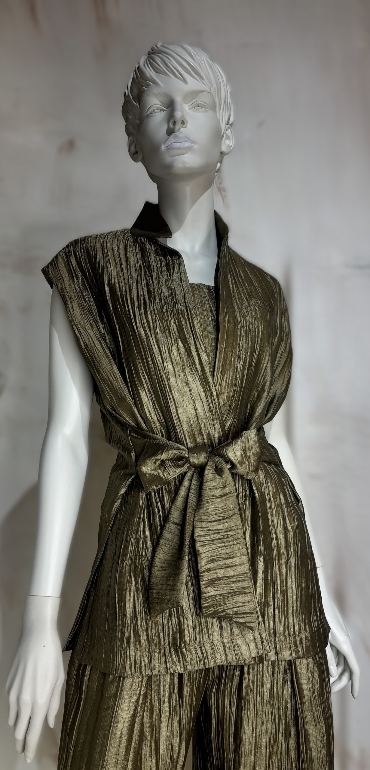 Ένα κλασικό ckontova σχέδιο, αυτό το αμάνικο πλισέ γιλέκο θα γίνει μία απαραίτητη επιλογή για βραδινά ποτά και πιο επίσημες εμφανίσεις. Φορέστε το με το ασορτί παντελόνι και το στράπλες τοπ ή συνδυάστε το το με ένα φόρεμα για πιο φρέσκο στιλ.
