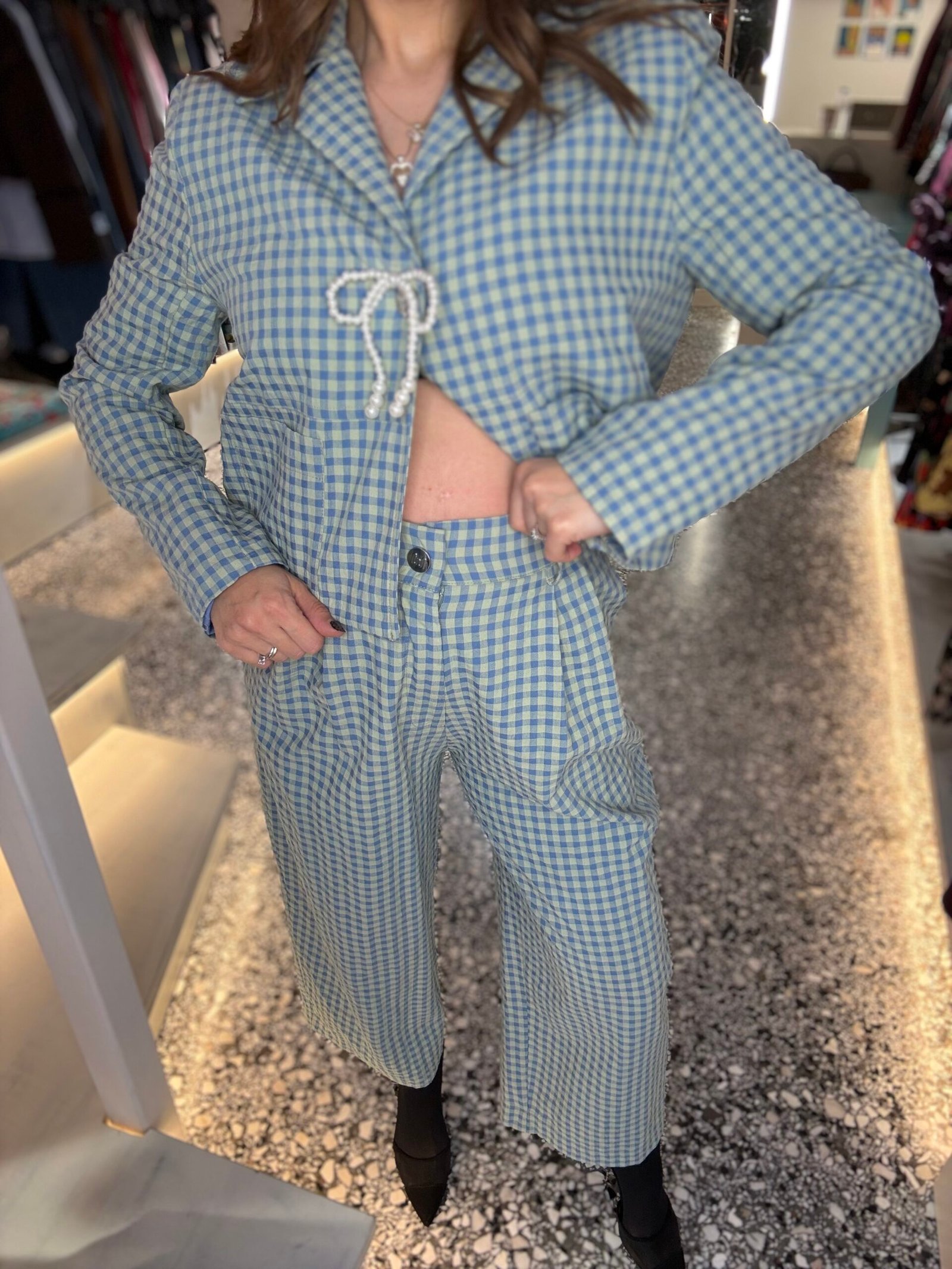 Classic plaid pants (mint blue)/Milkwhite παντελόνι