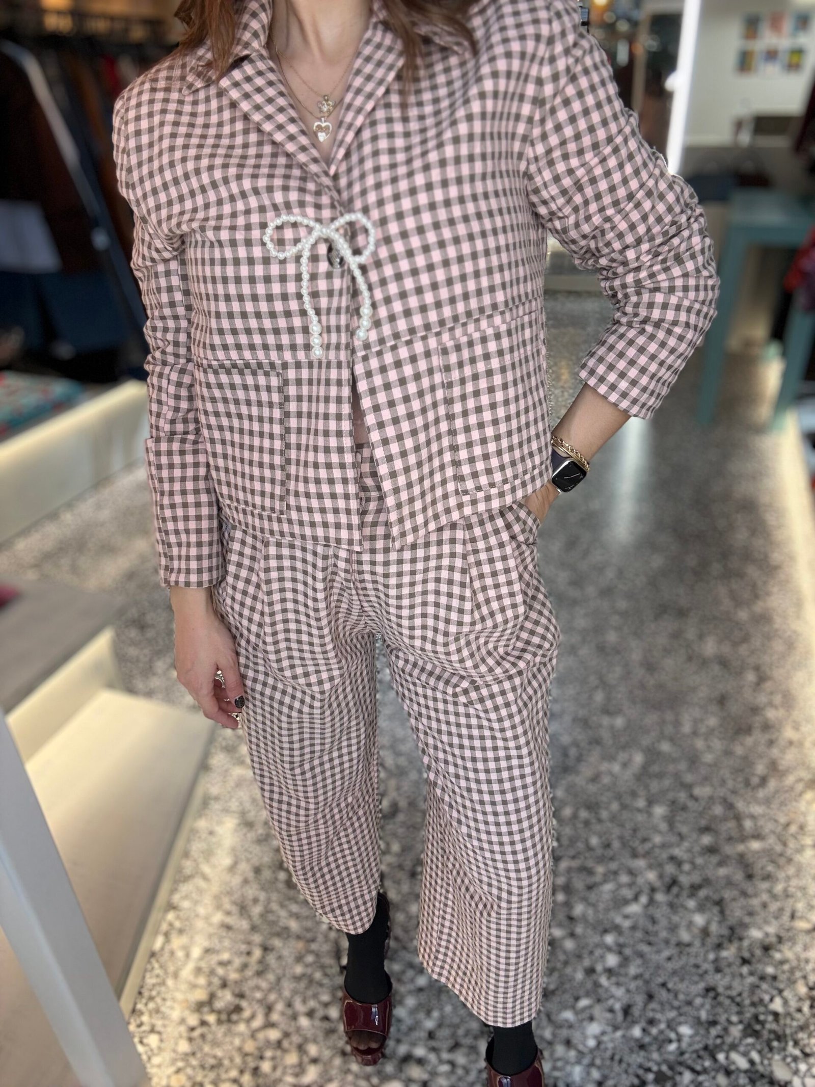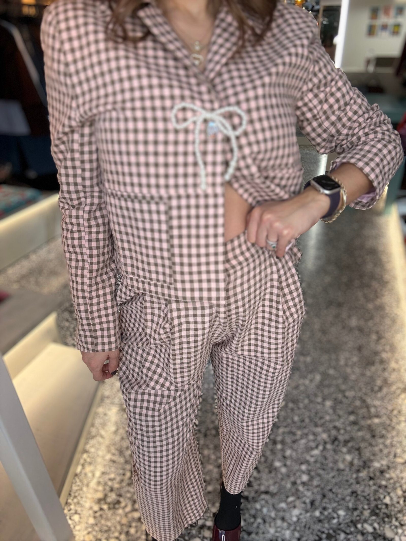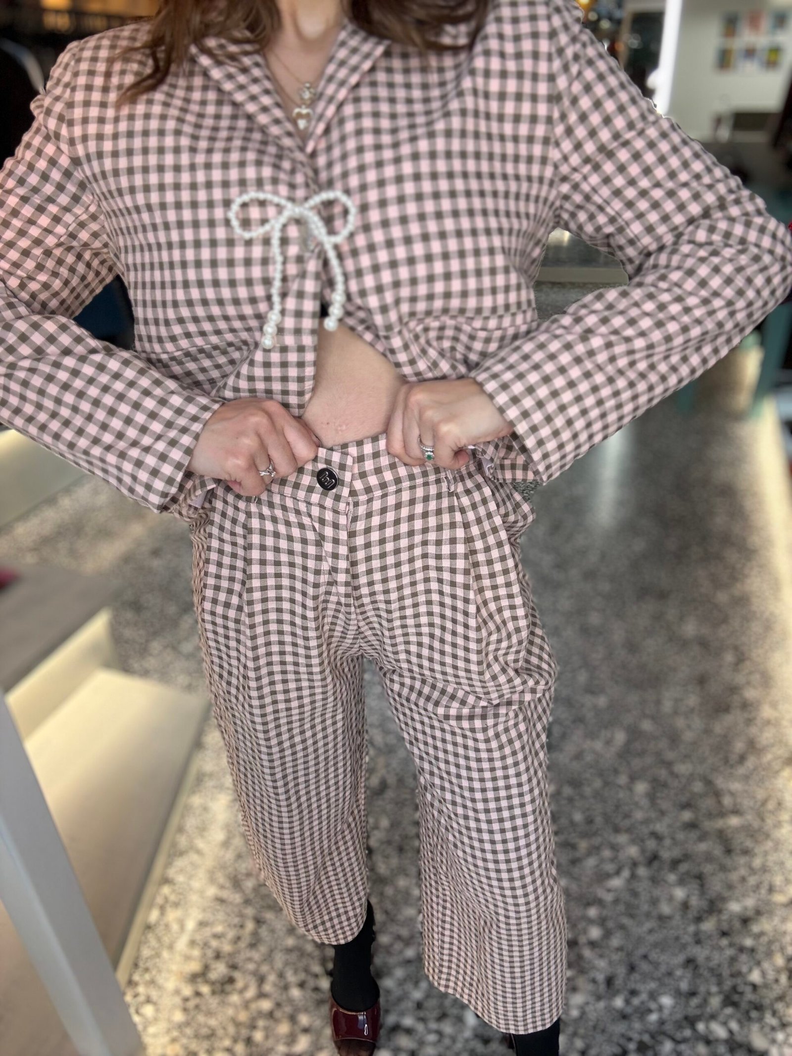 Classic plaid pants (pink brown)/Milkwhite παντελόνι