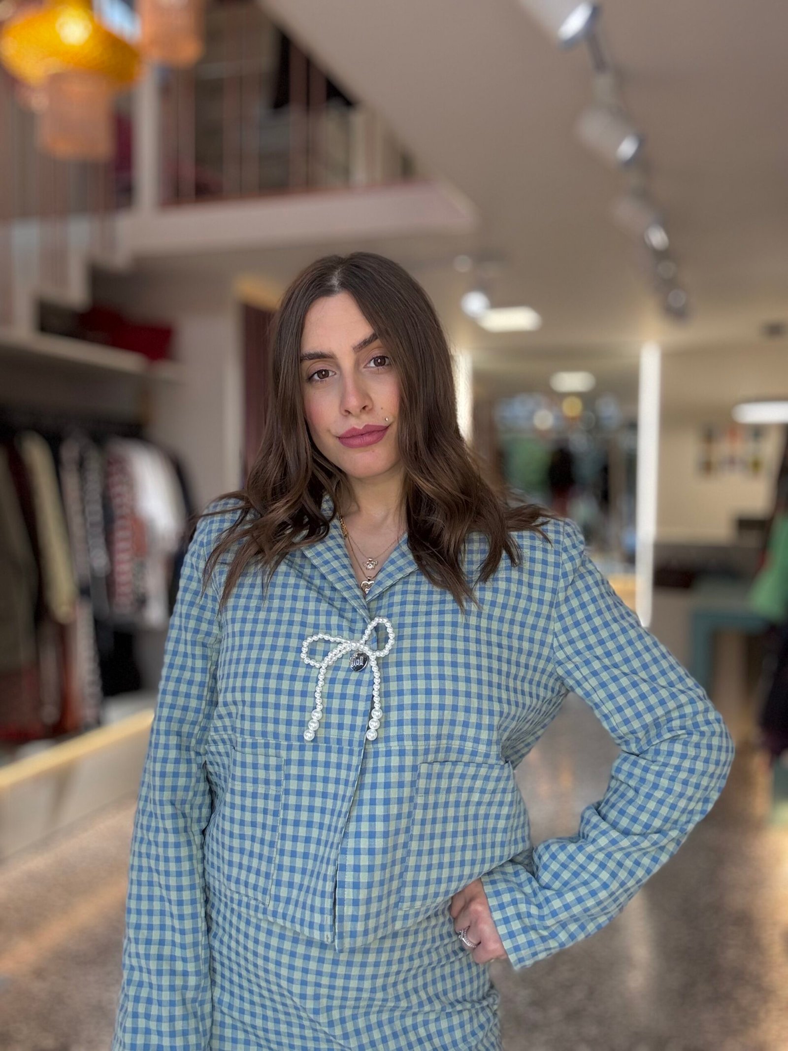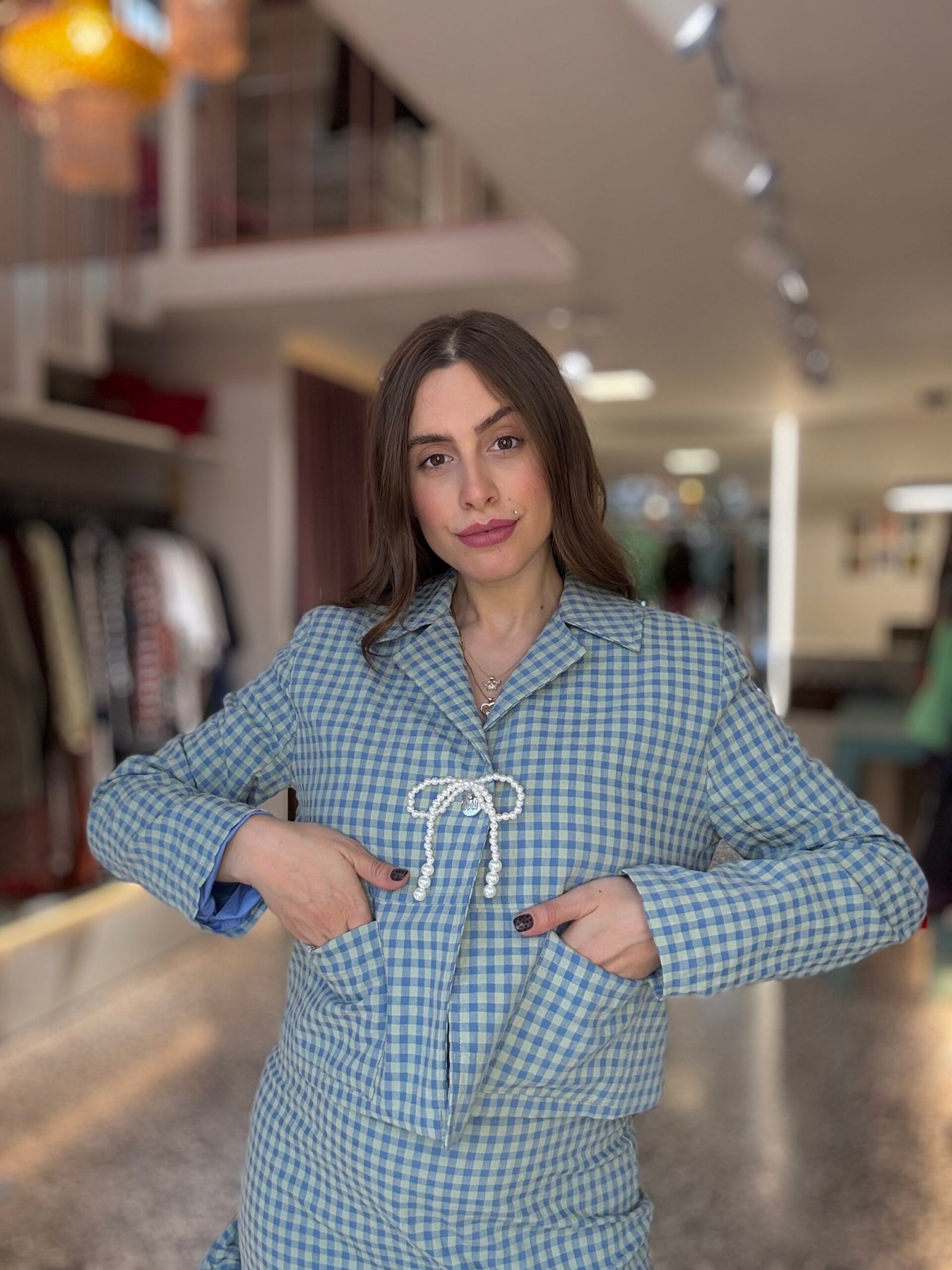 Cropped jacket with pearls (mint blue)/Milkwhite πανωφόρι