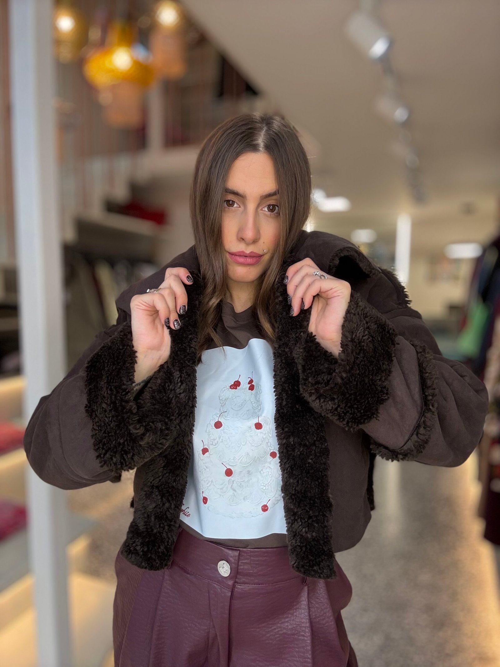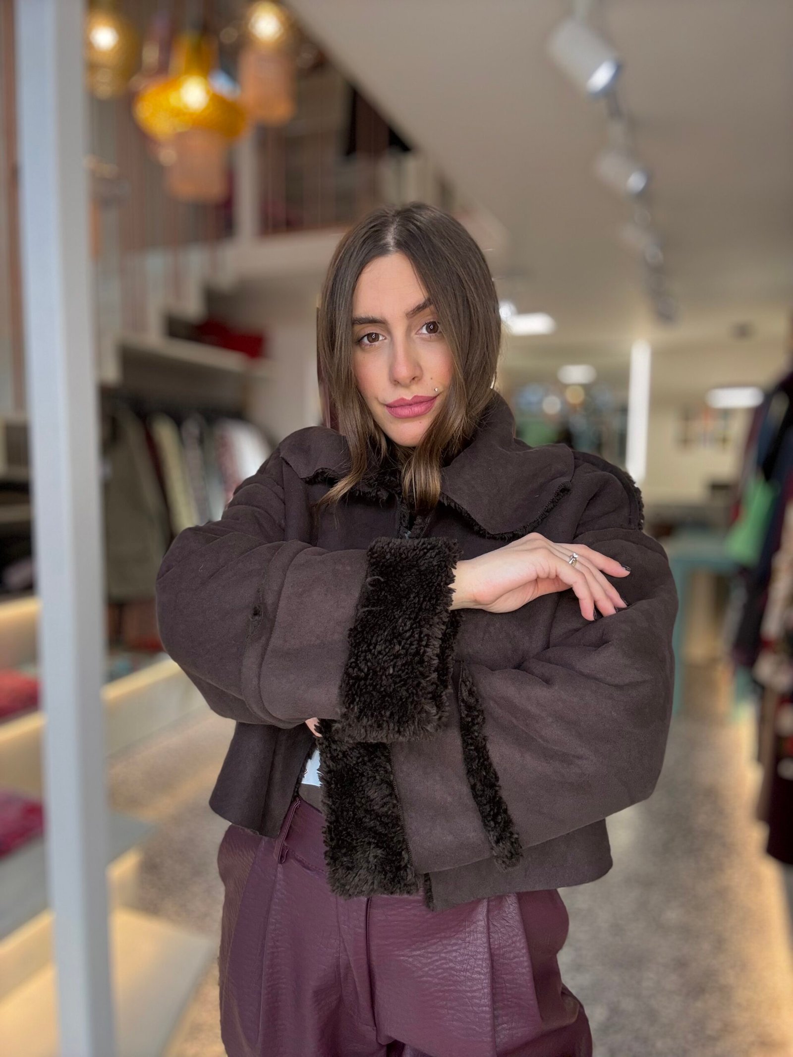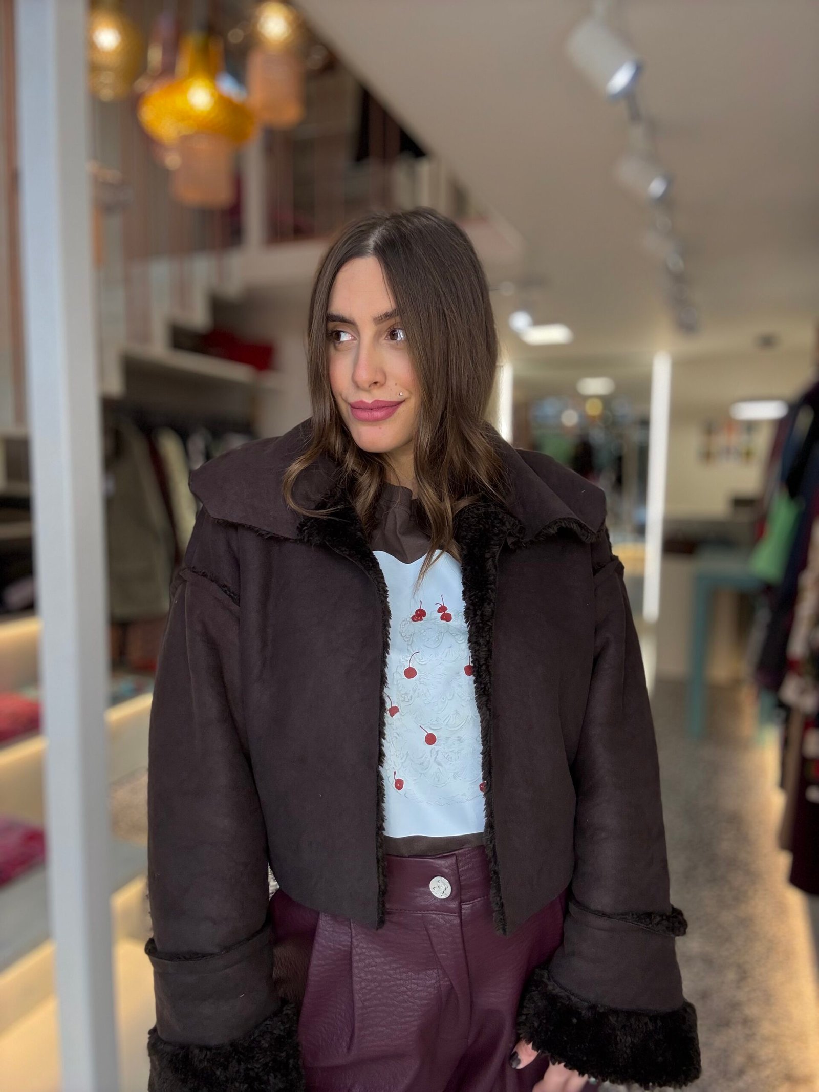 Cropped suede jacket with faux fur/Milkwhite πανωφόρι