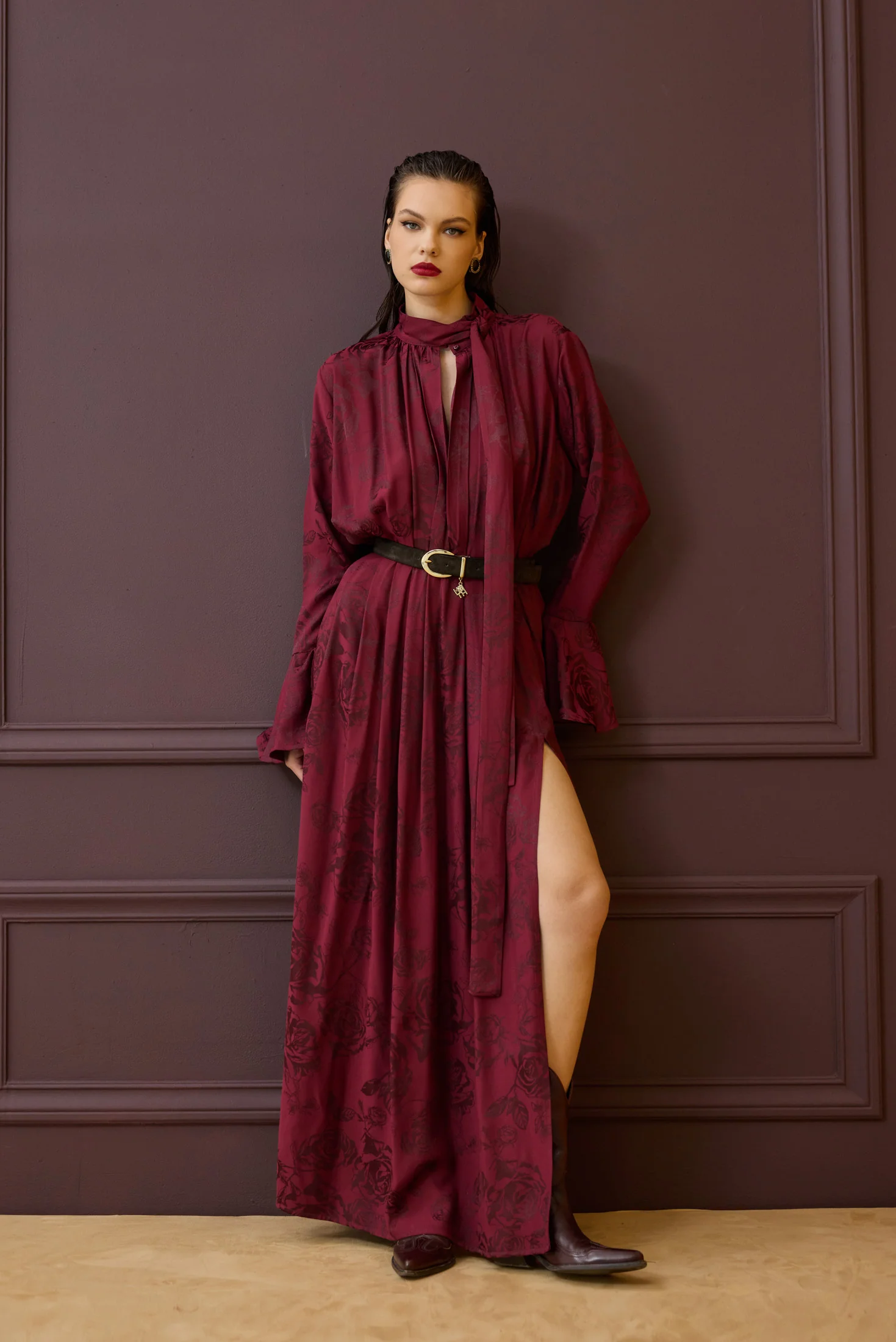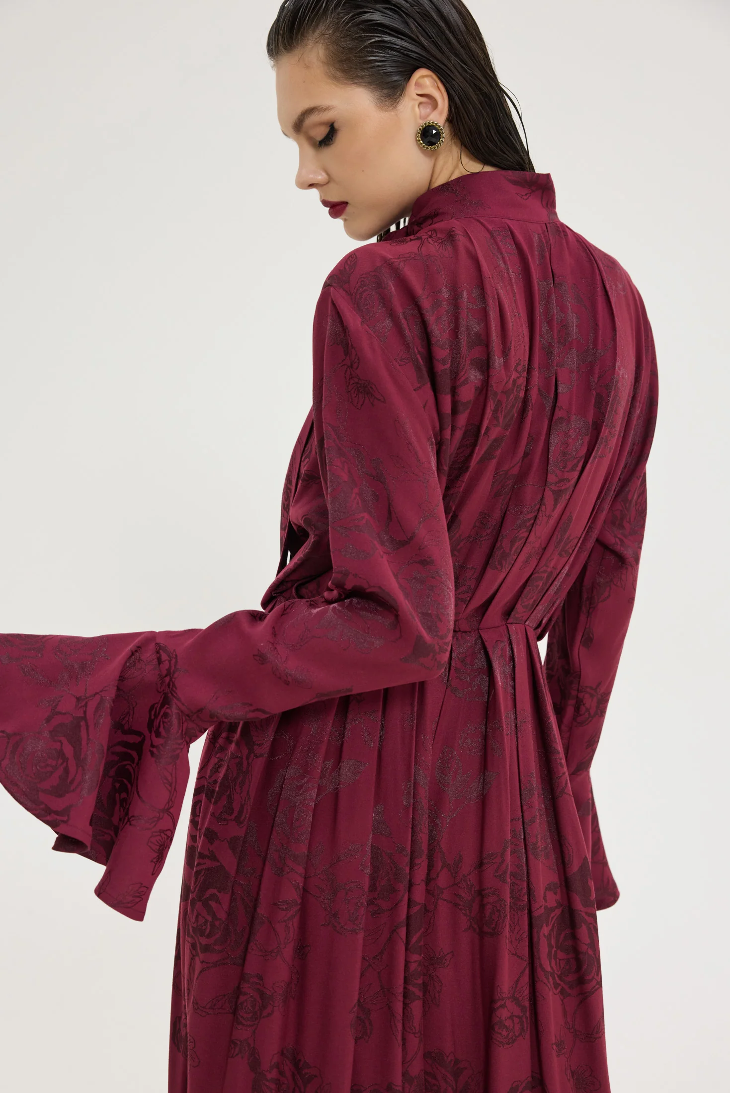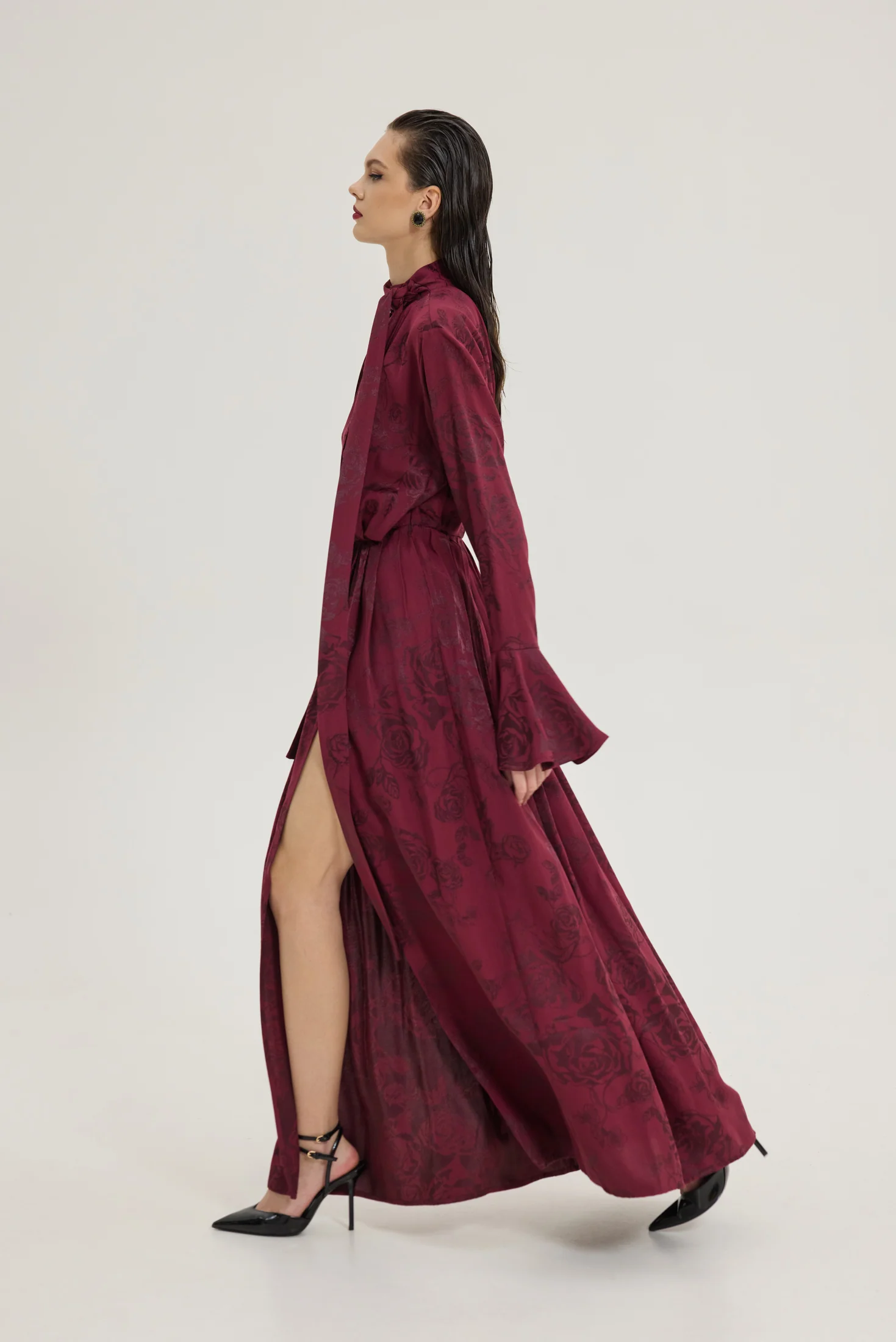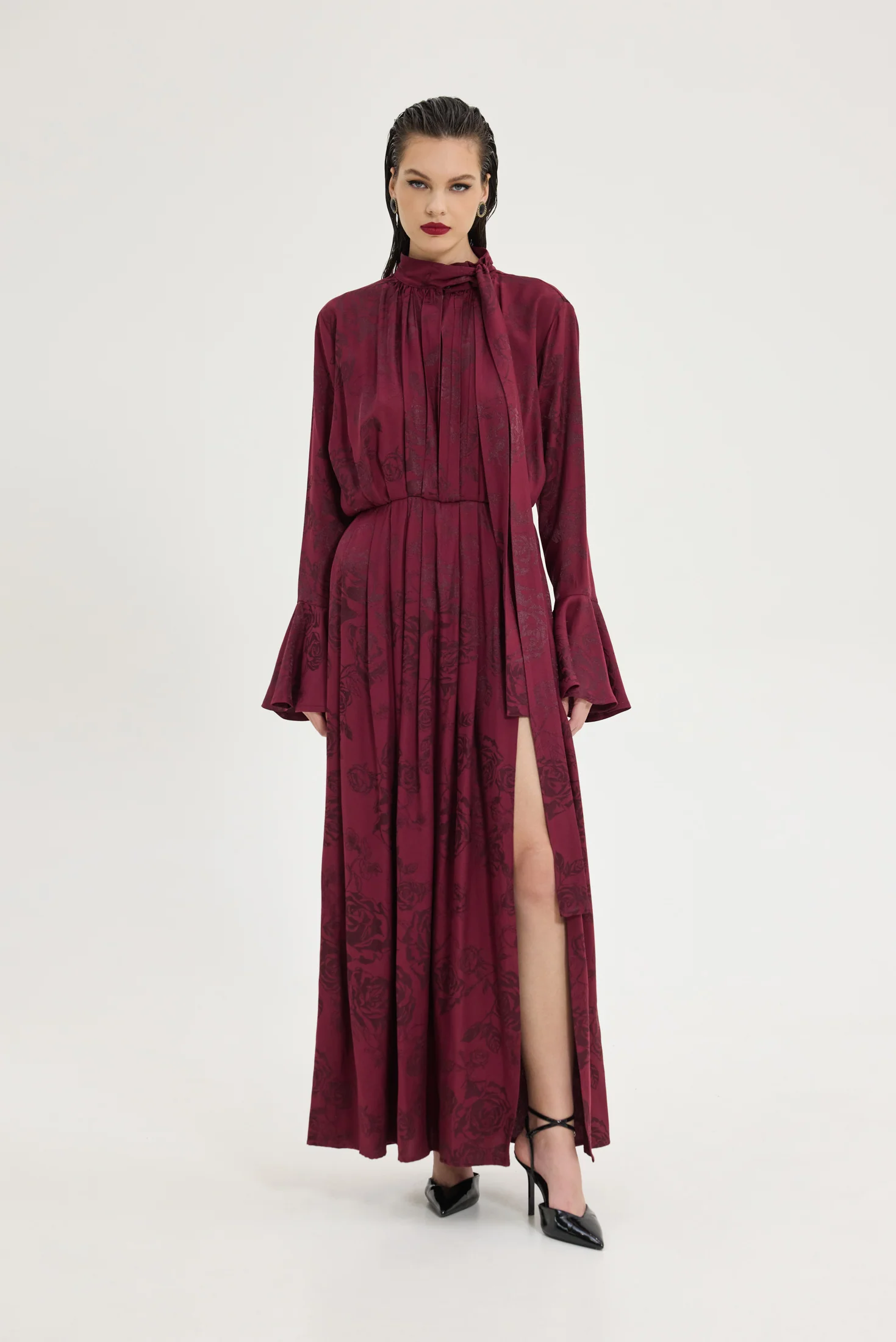 Τι είναι η Jacquard σατέν βισκόζη και γιατί προσπαθήσαμε τόσο να πετύχουμε τον τέλειο συνδυασμό; Είναι το πιο μαλακό και δροσερό ύφασμα που θα φορέσεις κι εμείς τη φτιάξαμε με το δικό μας print σε tone to tone bordeaux. Πολλές προσπάθειες για το “τέλειο” χρώμα και την ισορροπία.