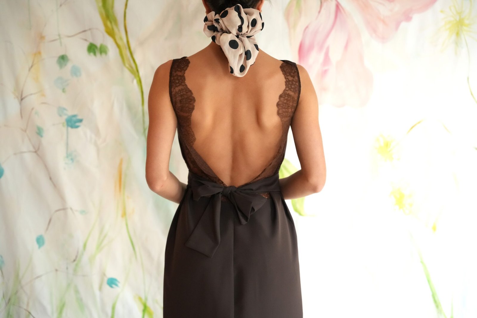 Midi sleeveless dress with an open back that has lace details