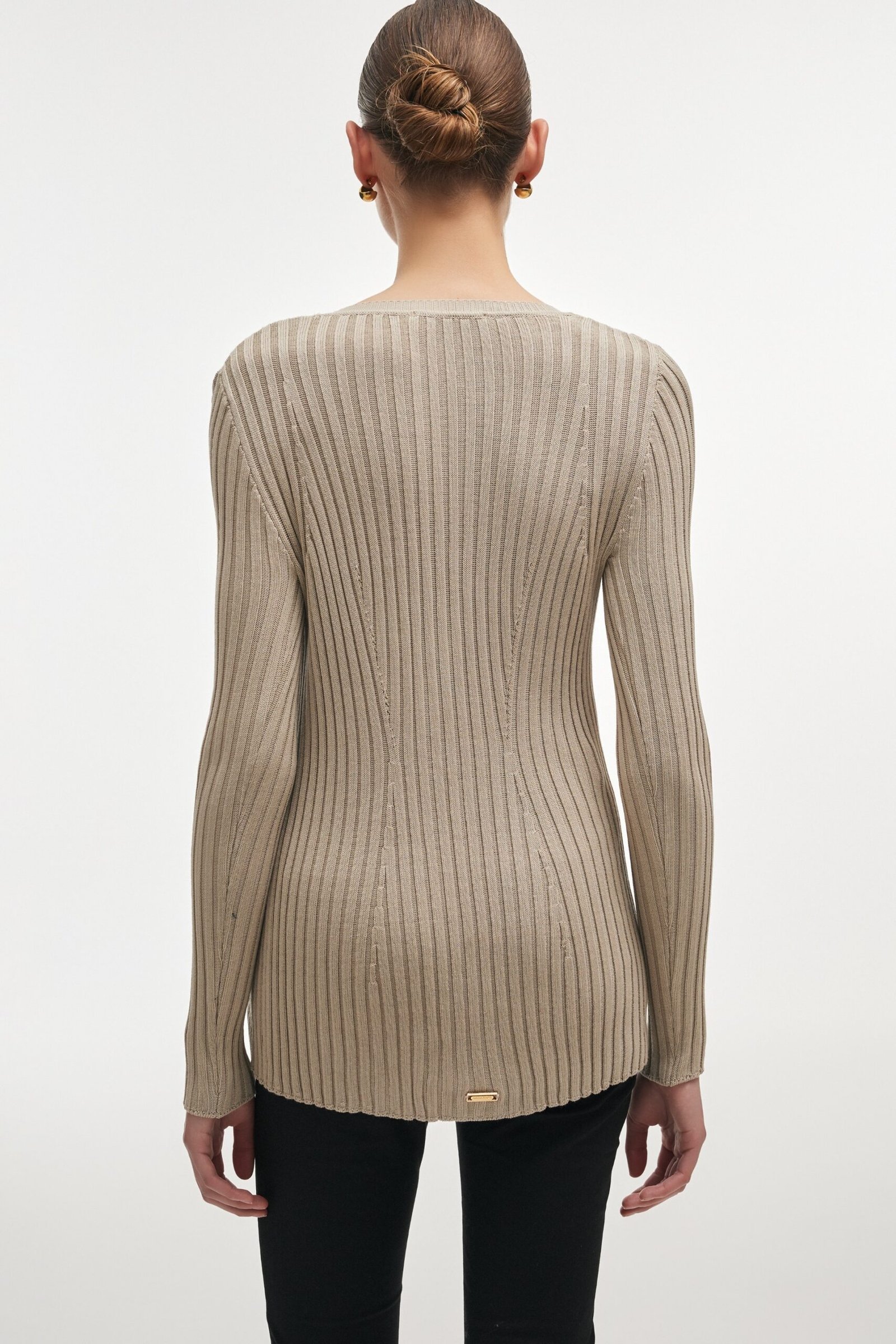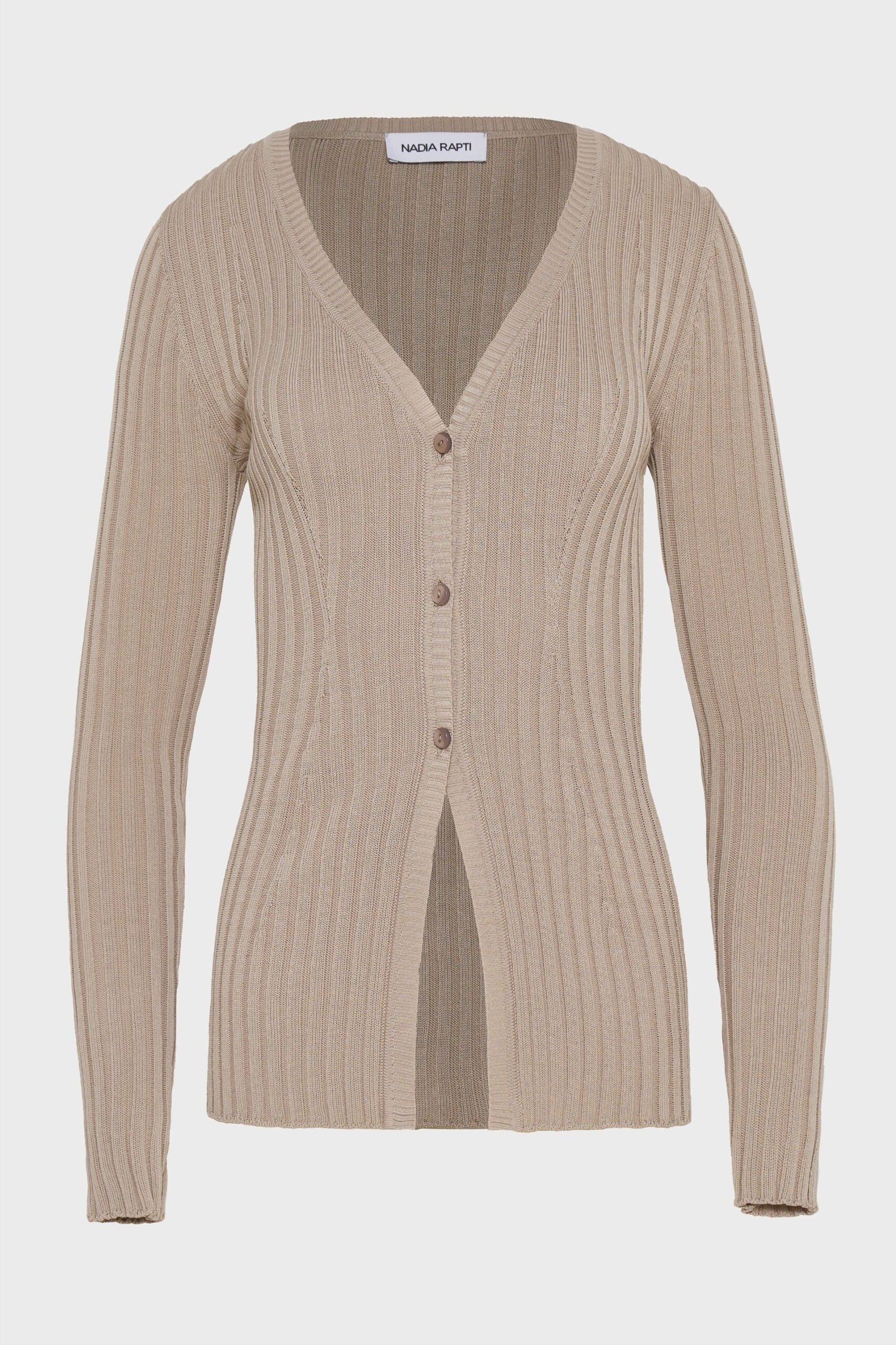 A refined knitted cardigan designed for effortless everyday elegance. Cut in a clean, fitted silhouette with long sleeves, it follows the body naturally while maintaining a sleek and structured appearance. Crafted from viscose rib fabric, it feels soft and smooth against the skin, offering comfort, flexibility, and a polished finish.