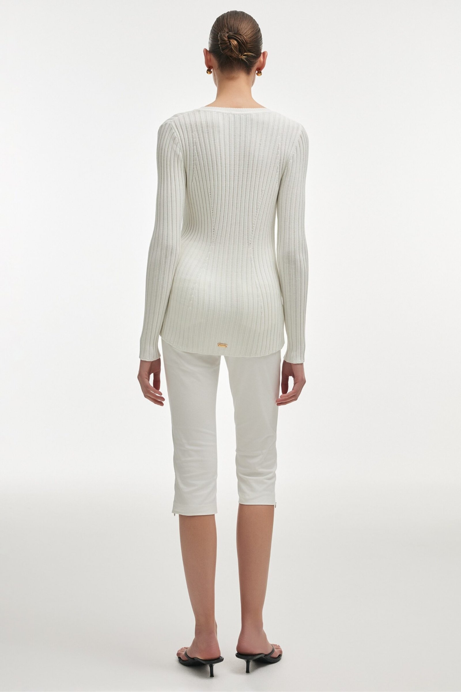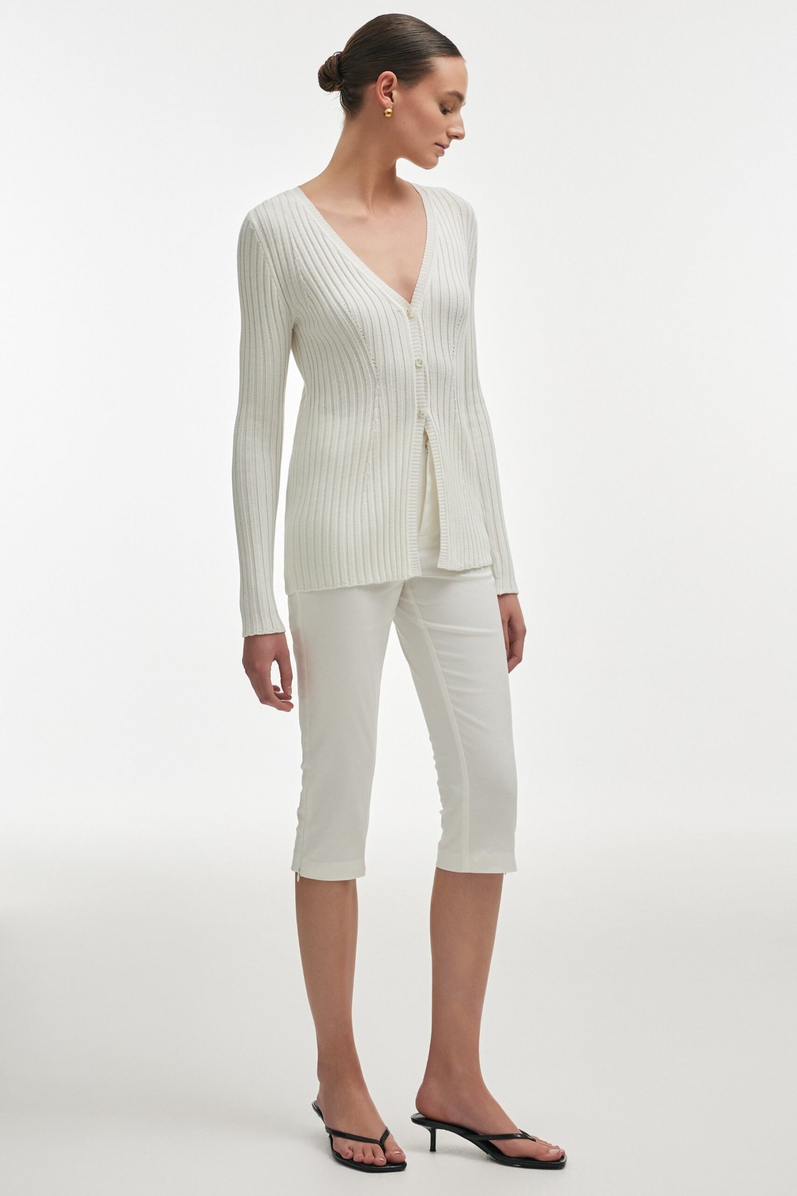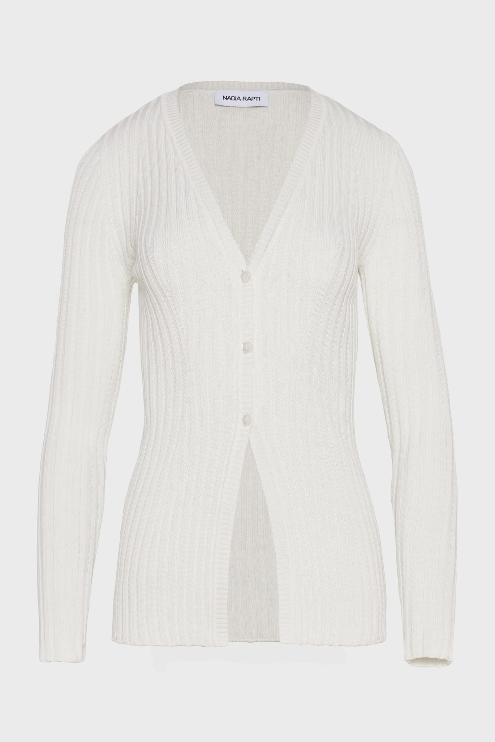 A refined knitted cardigan designed for effortless everyday elegance. Cut in a clean, fitted silhouette with long sleeves, it follows the body naturally while maintaining a sleek and structured appearance. Crafted from viscose rib fabric, it feels soft and smooth against the skin, offering comfort, flexibility, and a polished finish.