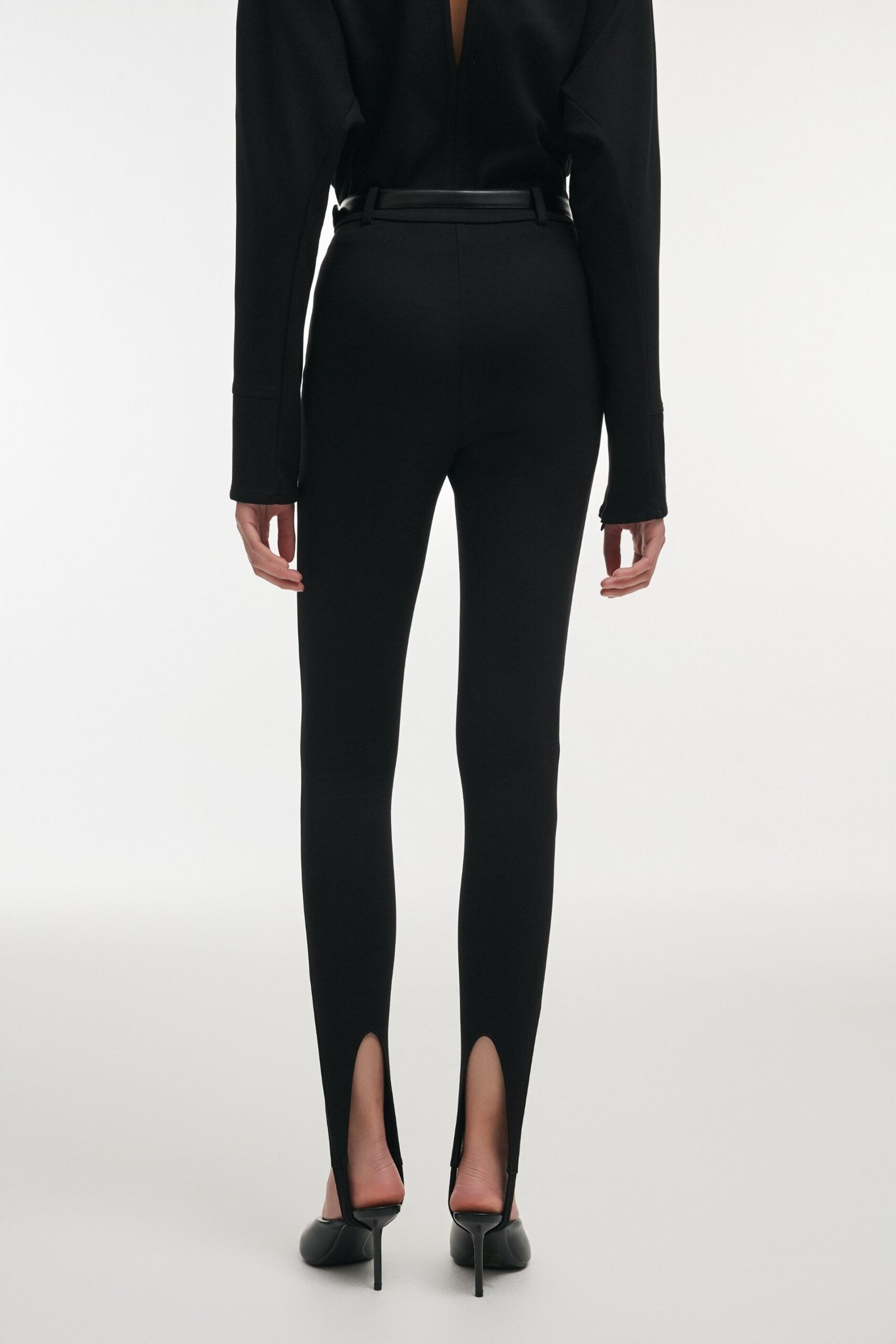 An exercise in precision and proportion. The Fleur Leggings are designed to contour the silhouette with clarity and control, defined by their elongated line and clean finish. The sharp front slits subtly frame the ankle, introducing movement and quiet sensuality.
