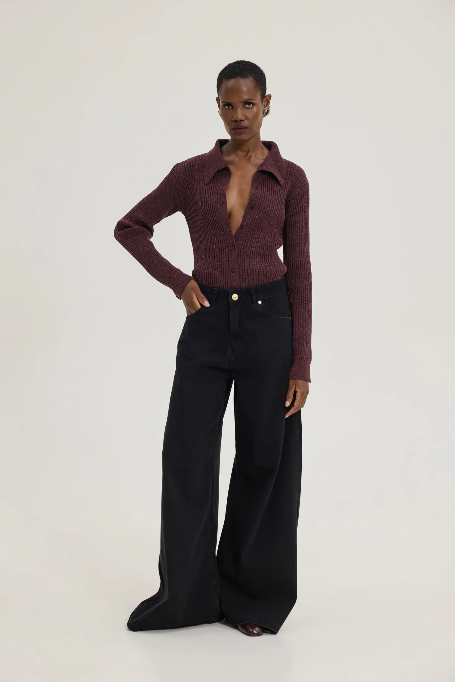 • Πλεκτό top bordeaux