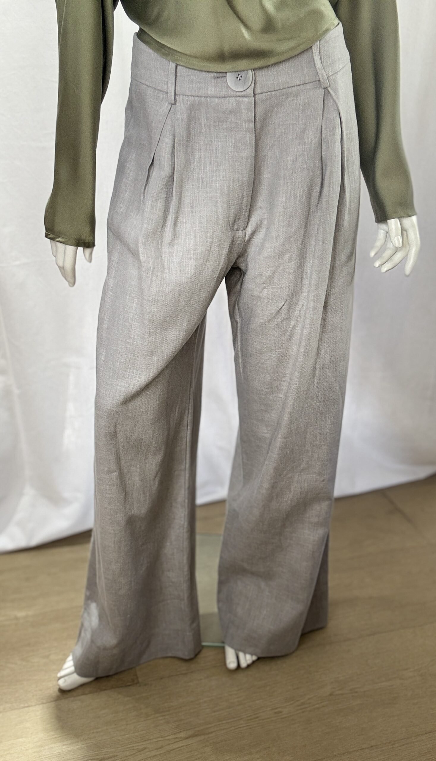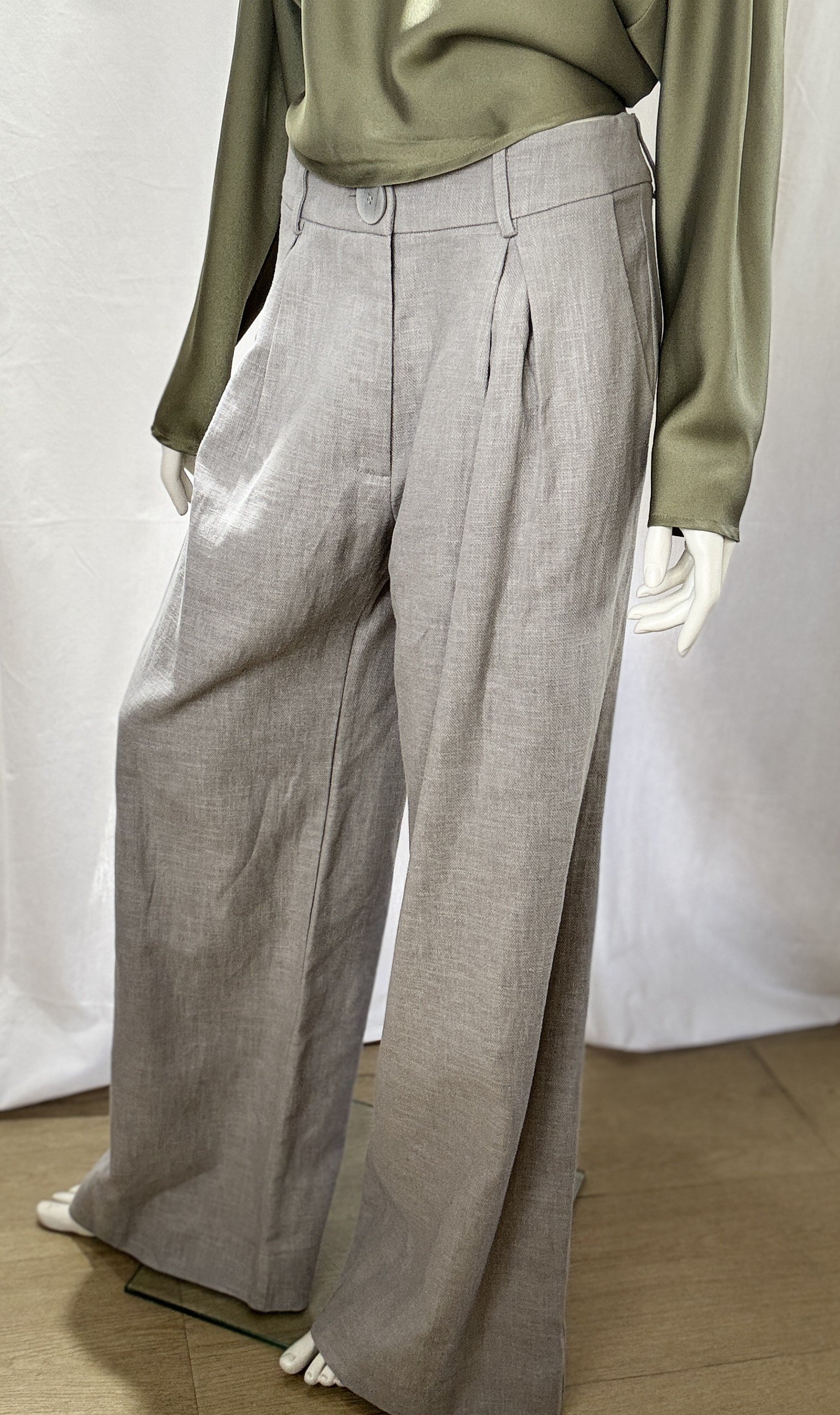 Effortless and polished, these ckontova wide-leg pants are tailored with a high-rise waist and soft front pleats for a flattering, elongated silhouette. Cut in a lightweight, linen-like fabric with a natural texture, they drape beautifully while staying breathable, perfect for warm-weather dressing. Finished with side pockets and a clean waistband, they pair seamlessly with the matching top or blazer for a refined co-ord set, or with a simple tank for everyday chic.