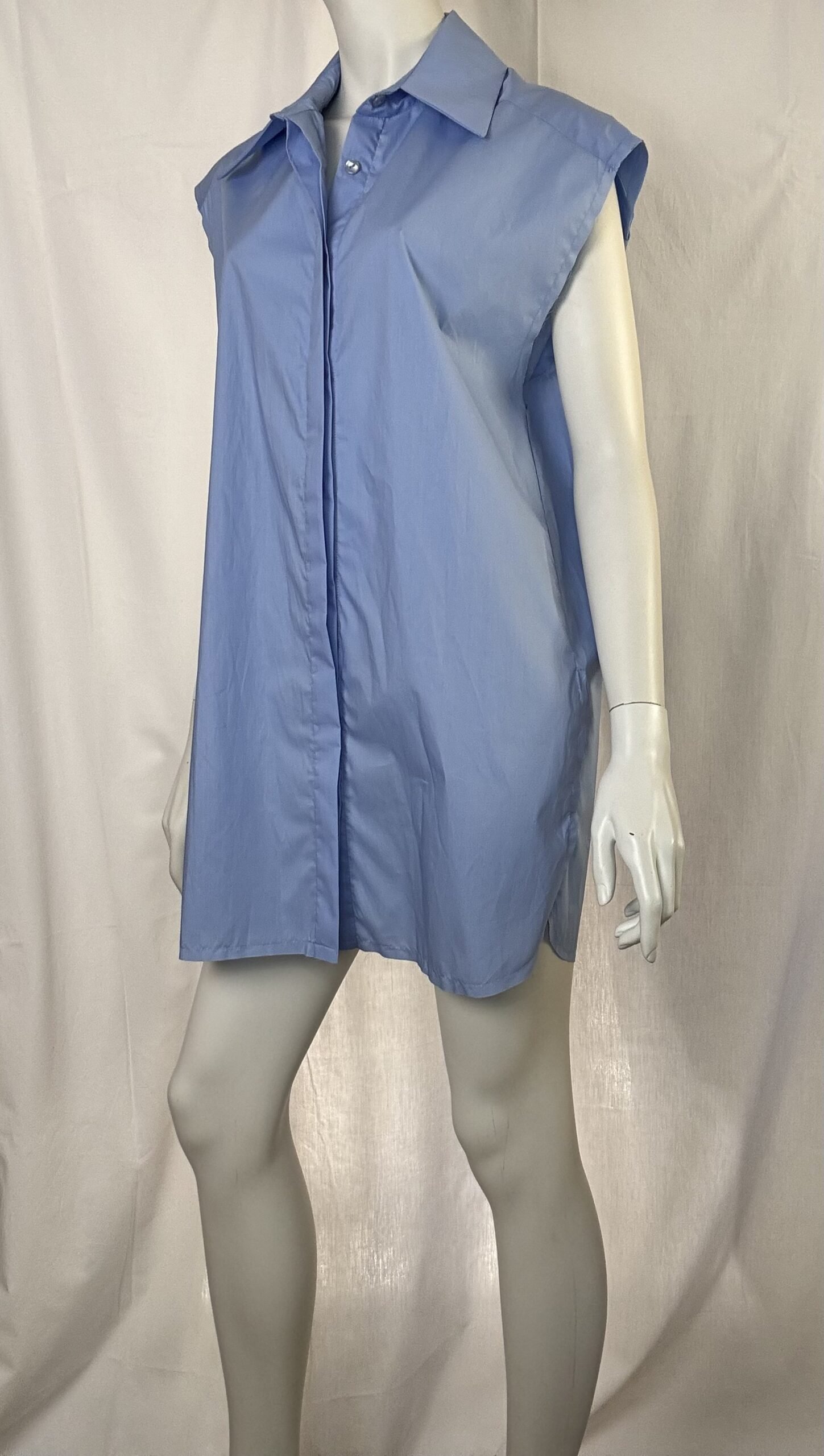 A modern wardrobe essential by ckontova, this sleeveless shirt dress is cut in a relaxed, straight silhouette for effortless day-to-night styling. Featuring a classic pointed collar and button-down front, it’s finished with a smooth, lightweight feel and a clean mini length. Wear it on its own with flat sandals, belt it to define the waist, or layer it over trousers for a contemporary, oversized look.
