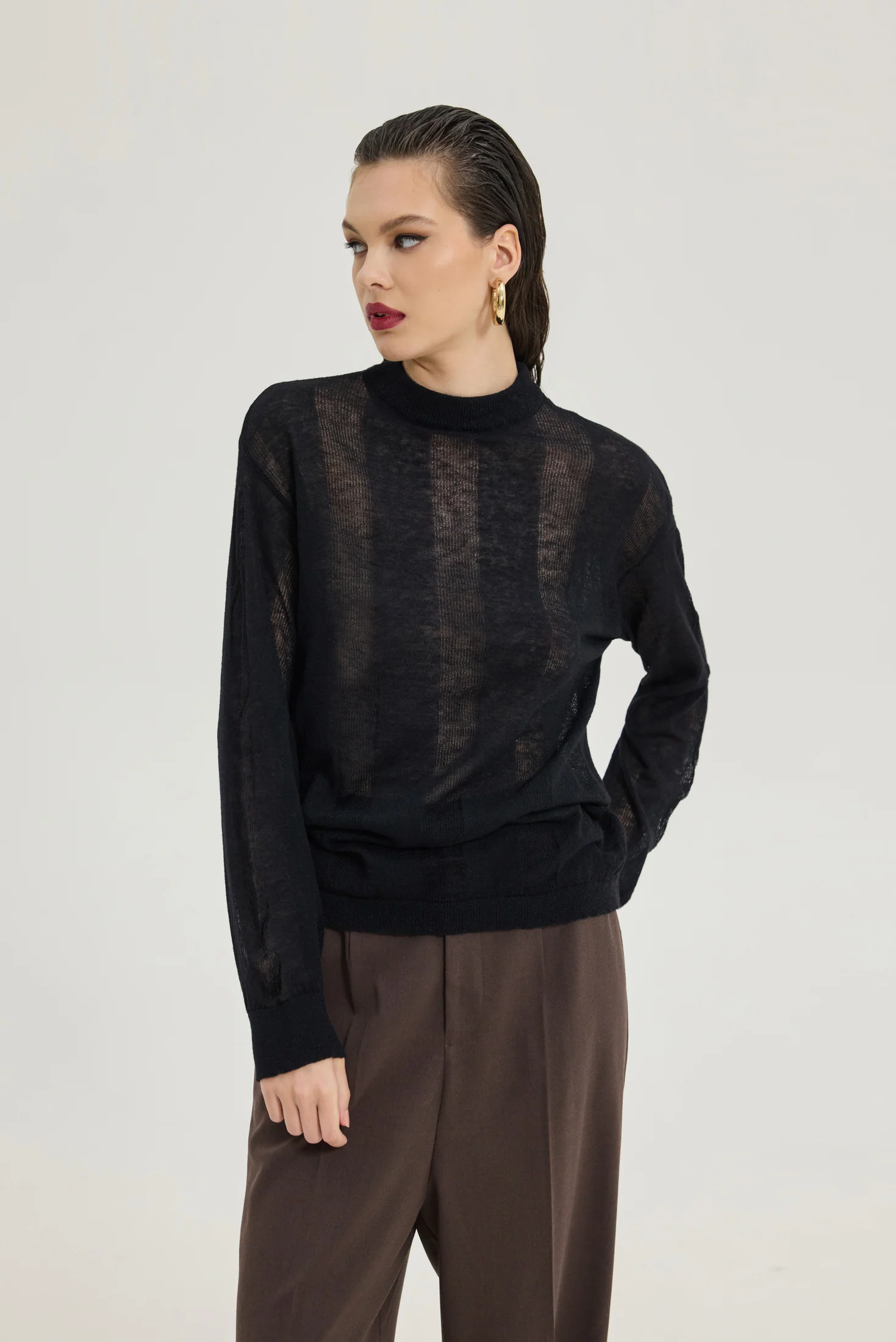 • Πλεκτή μπλούζα με διαφάνειες