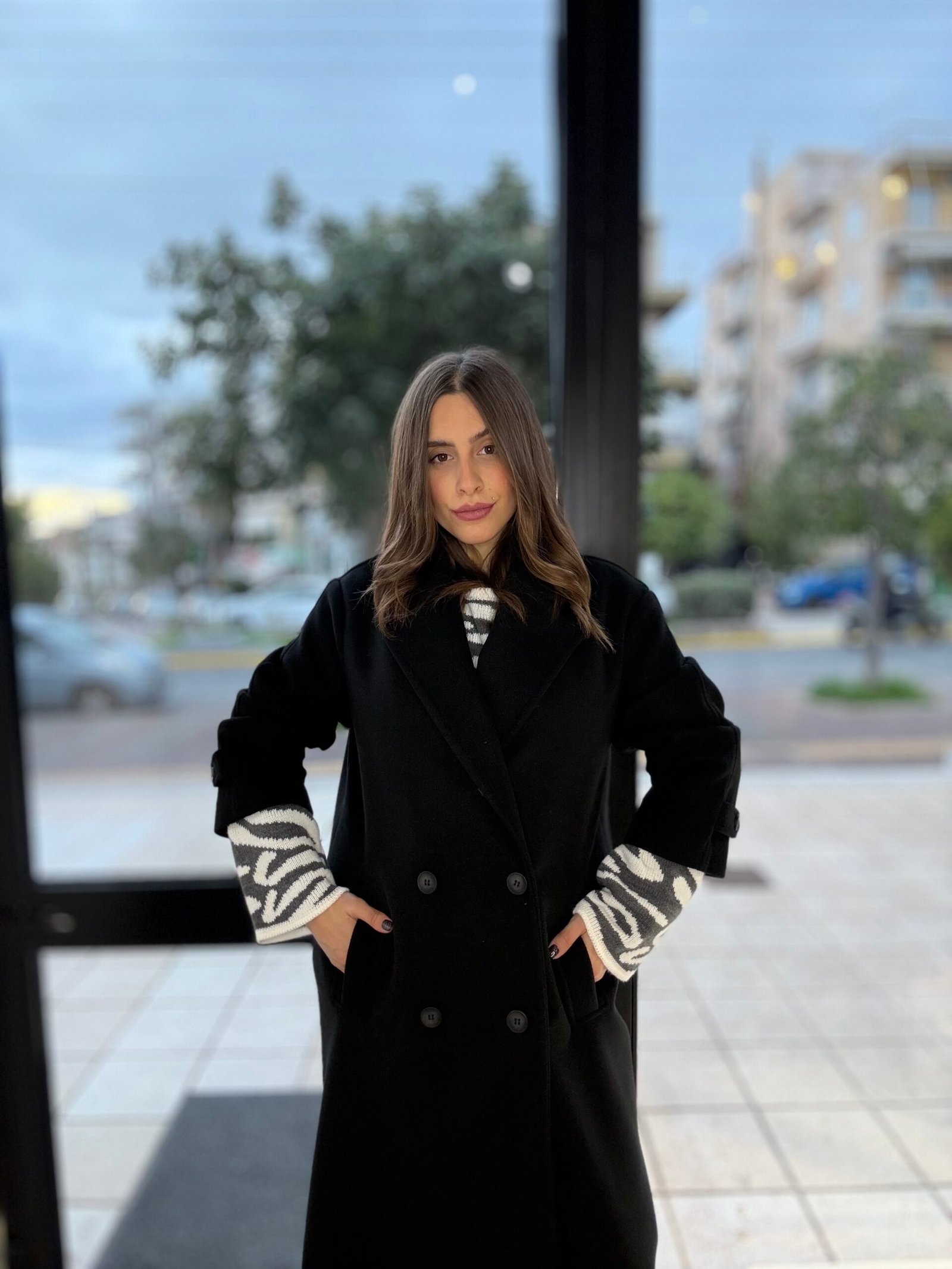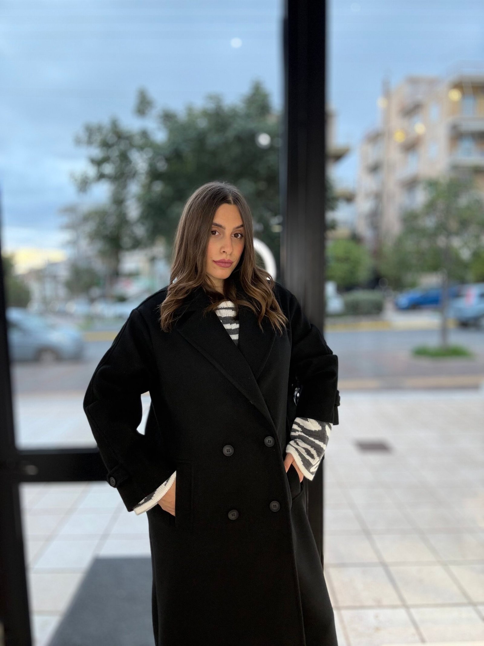 Malena cross-front coat (black) /New age πανωφόρι