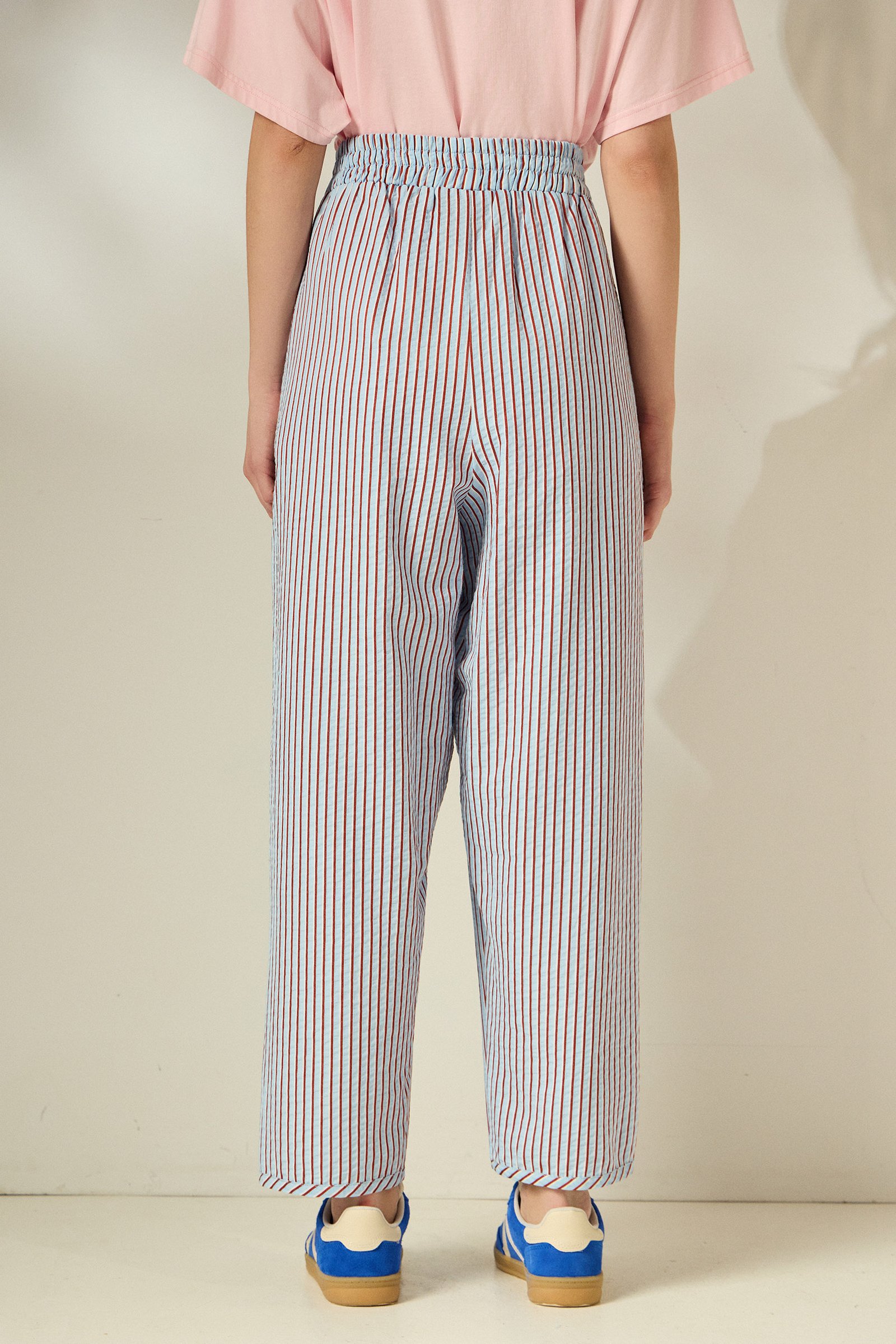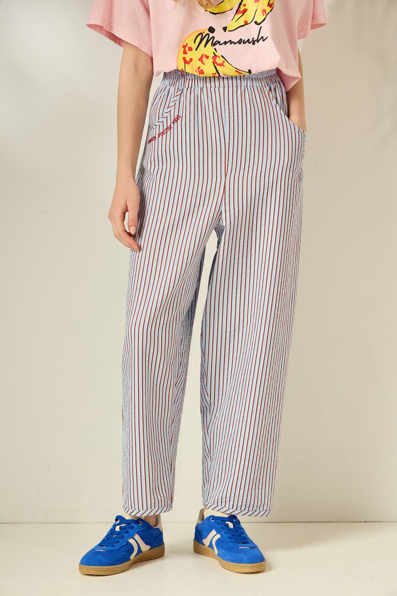 Ανάλαφρο και σύγχρονο, αυτό το καρό balloon παντελόνι συνδυάζει άνεση και στιλ με effortless διάθεση. Η relaxed γραμμή και το λάστιχο στη μέση προσφέρουν τέλεια εφαρμογή, ενώ το διαχρονικό ριγέ μοτίβο δίνει μία φρέσκια, καλοκαιρινή αισθητική. Ένα κομμάτι που φοριέται από το πρωί έως το βράδυ.