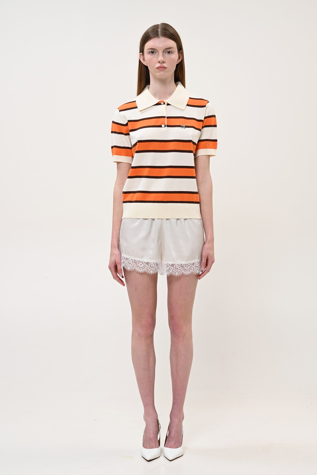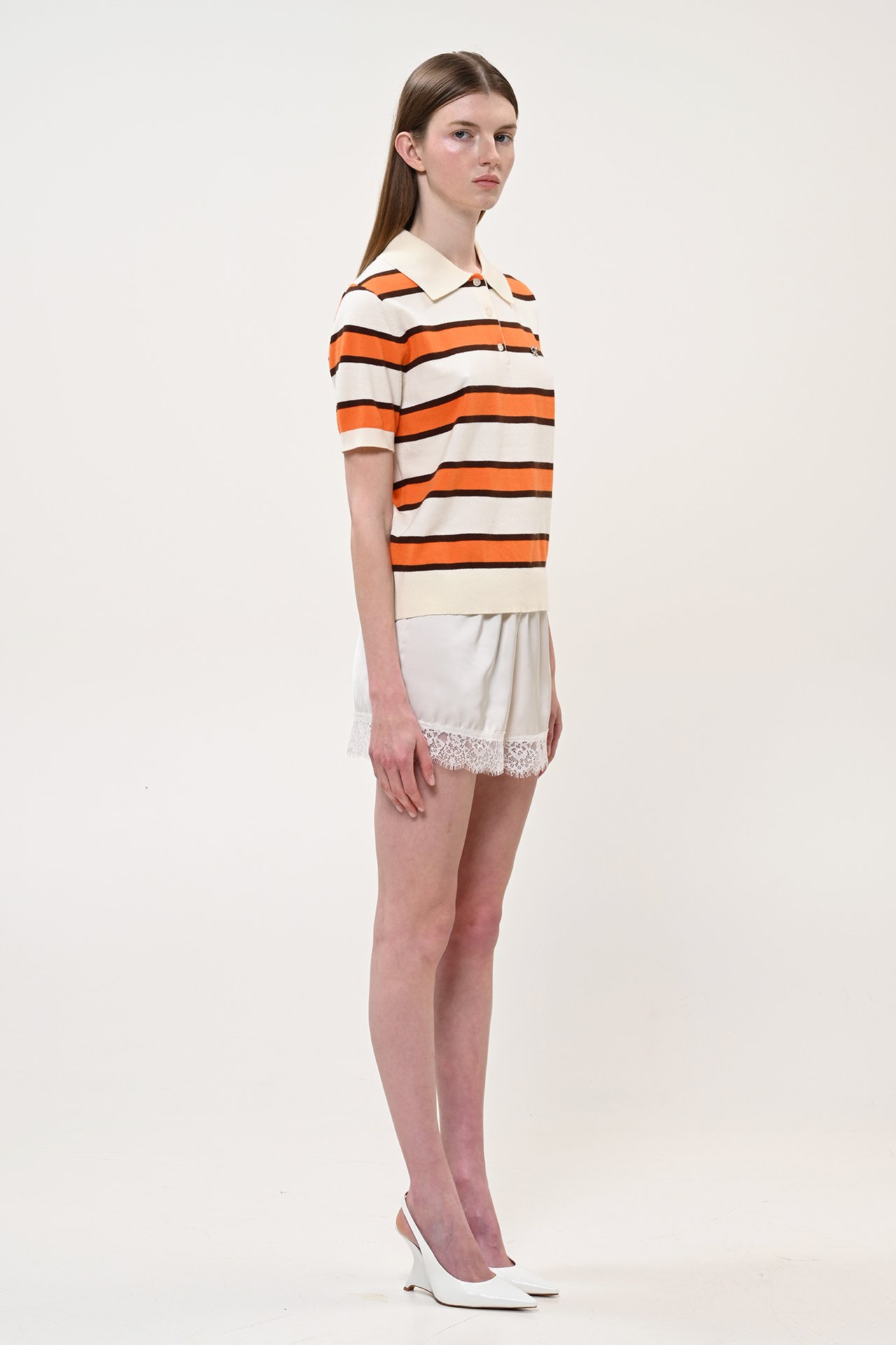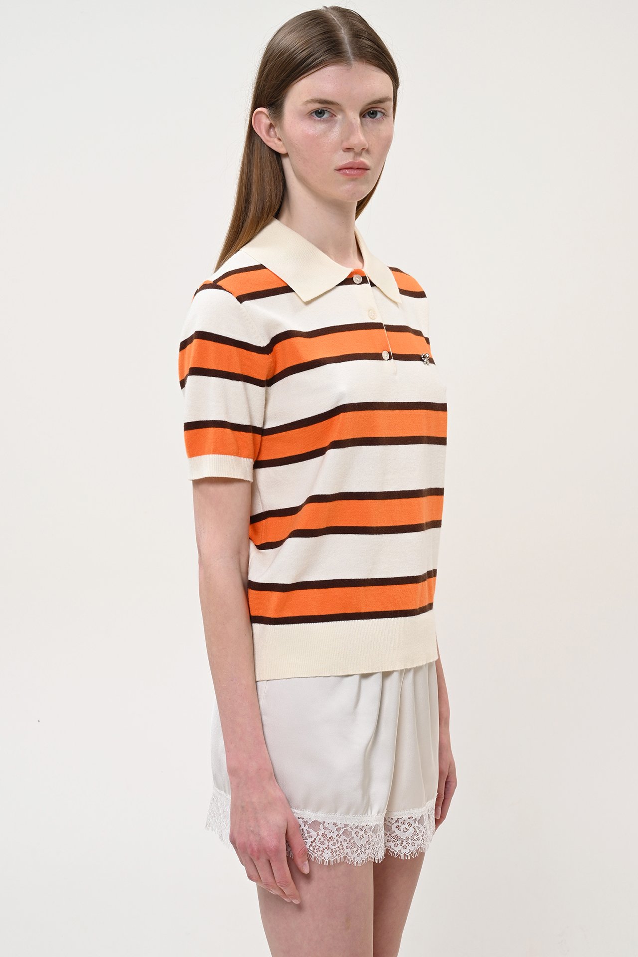 Multi-color striped polo sweater (orange)/Boom μπλούζα