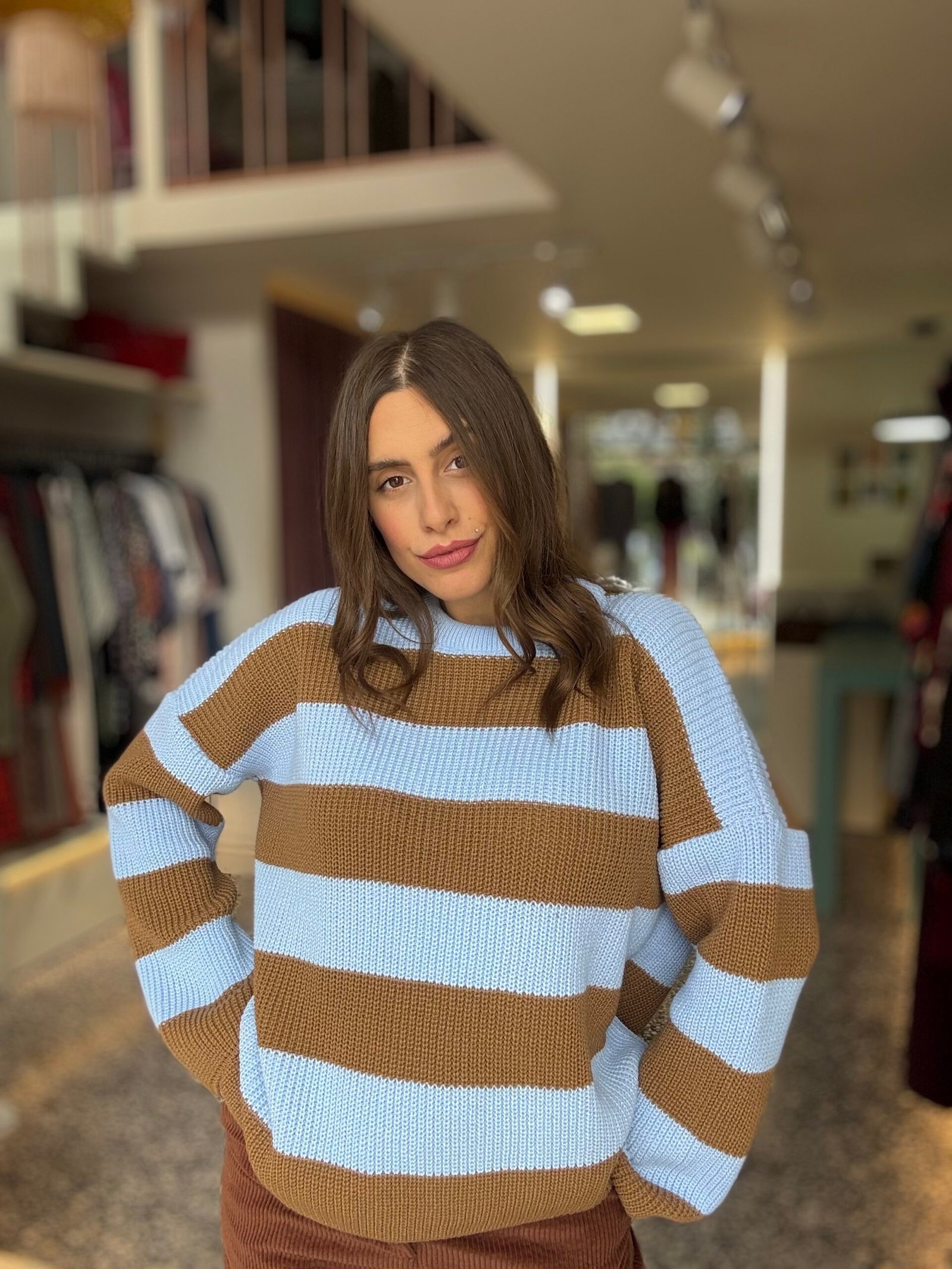 Myrto striped knit top (ciel-brown)/Mamoush πλεκτό πουλόβερ