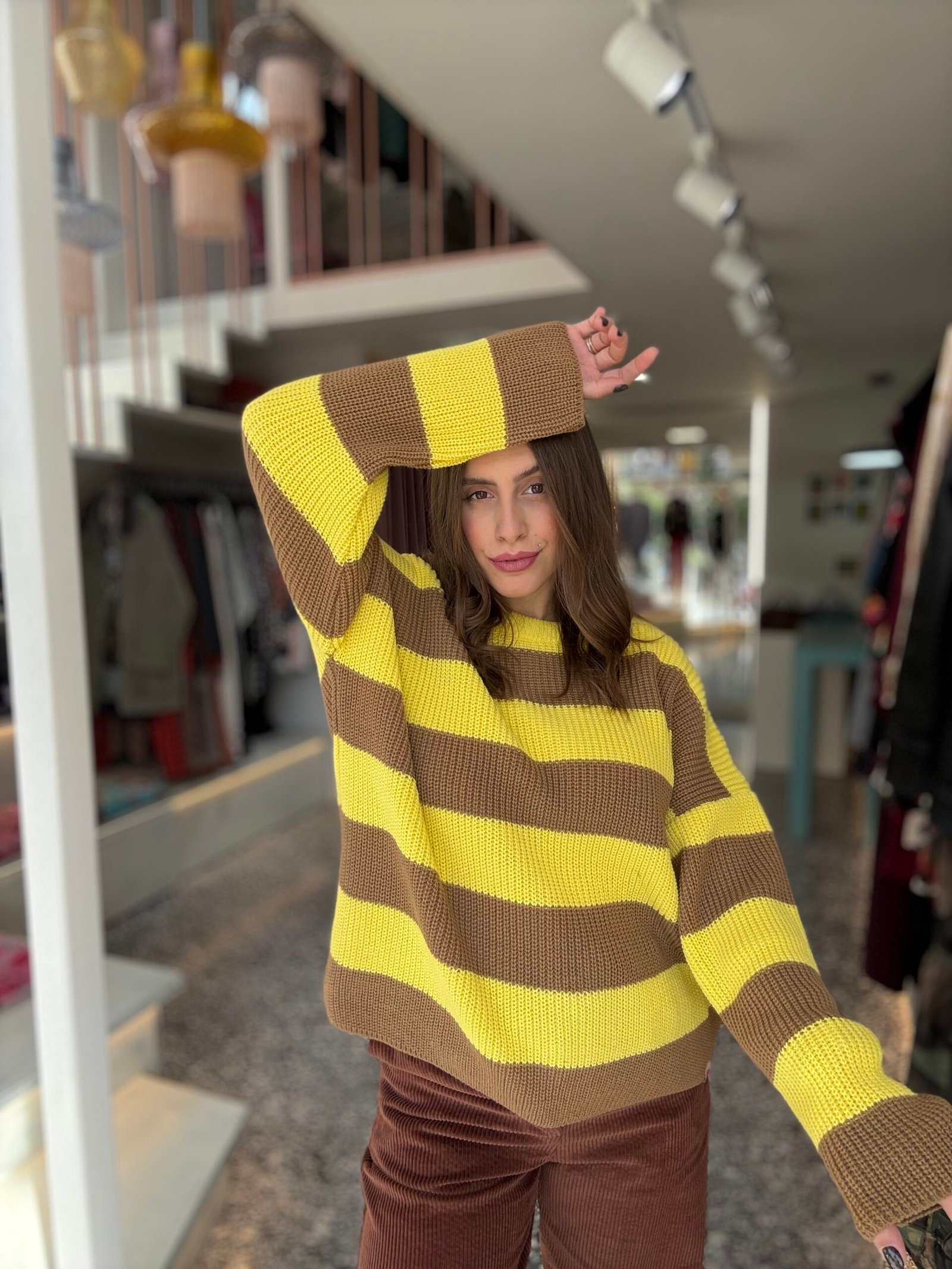 Myrto striped knit top (yellow-brown)/Mamoush πλεκτό πουλόβερ