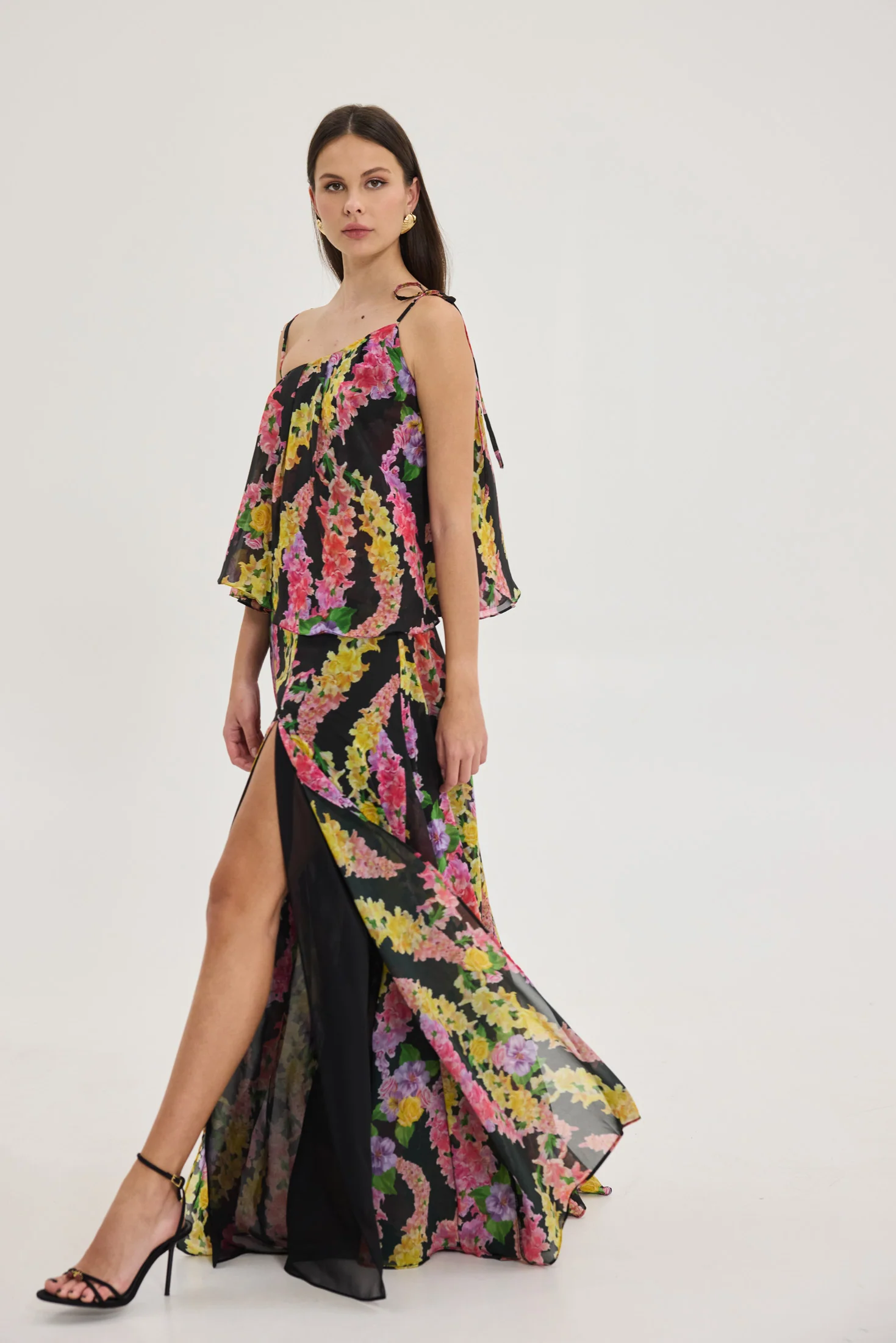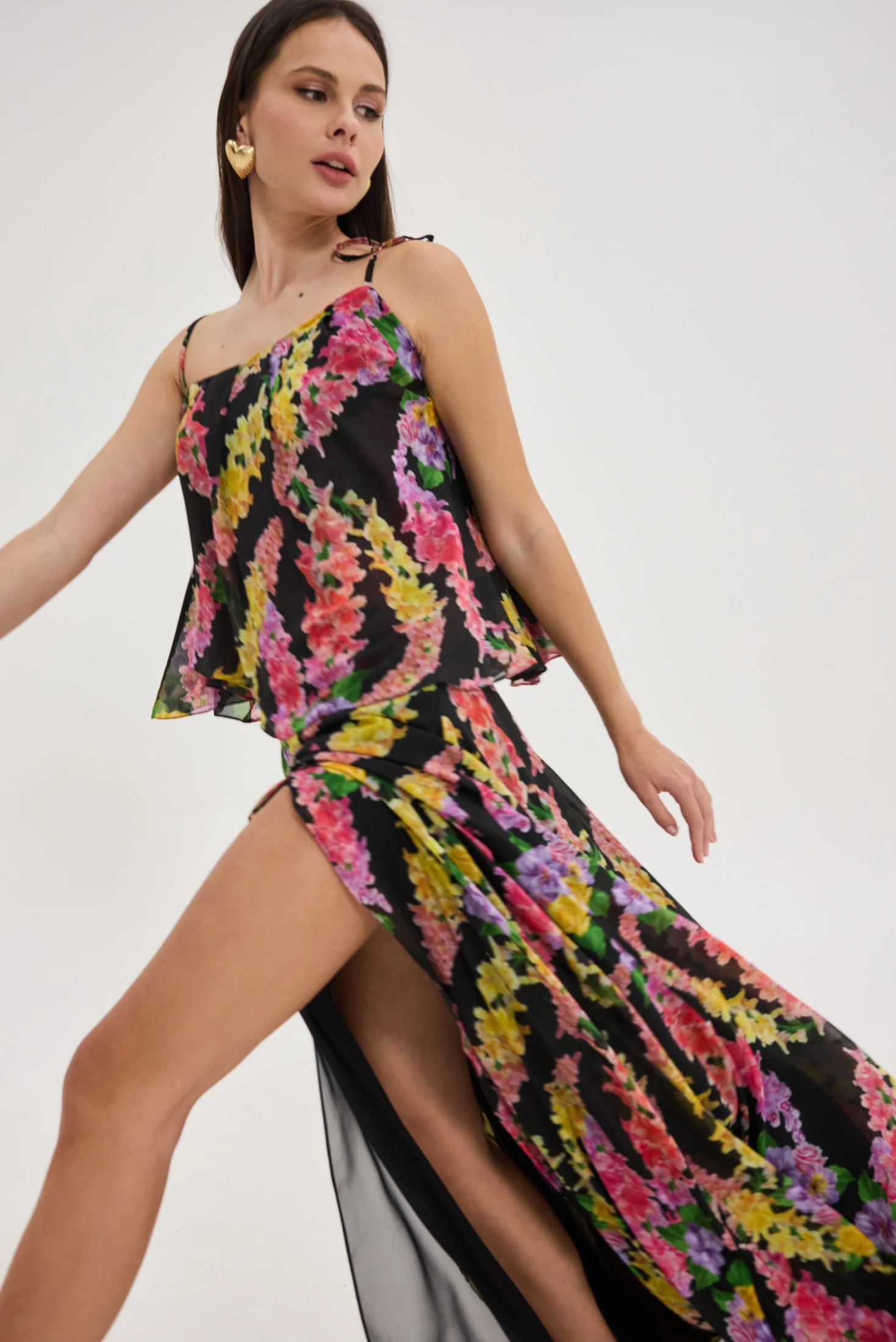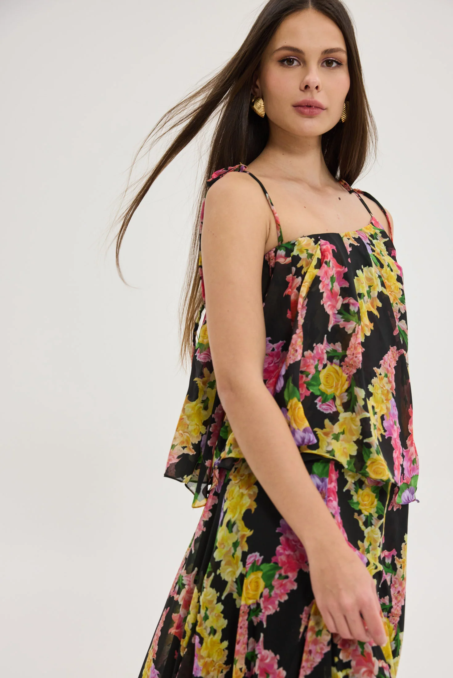 • Pattern με πολύχρωμα λουλούδια σε μαύρο φόντο
