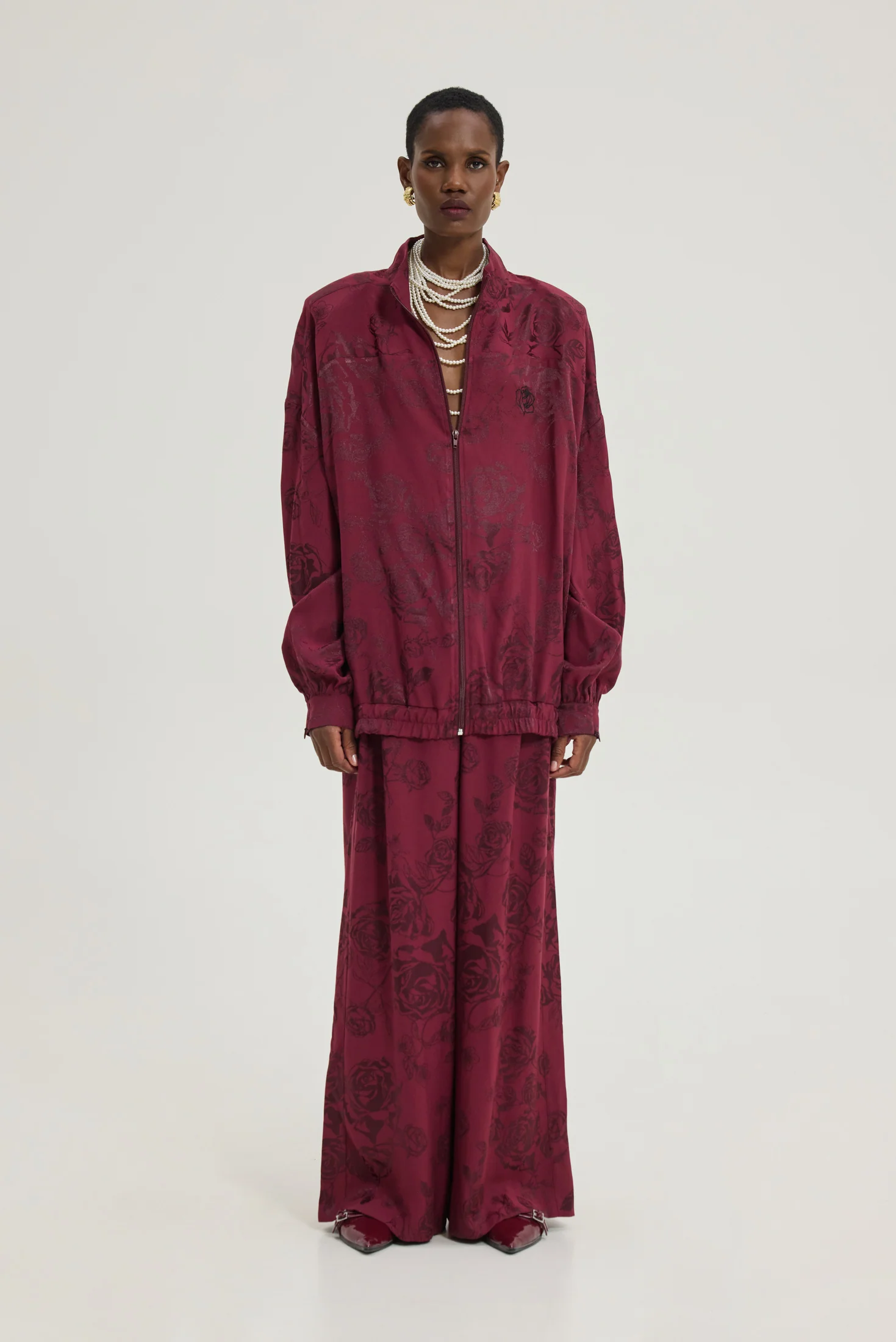 Τι είναι η Jacquard σατέν βισκόζη και γιατί προσπαθήσαμε τόσο να πετύχουμε τον τέλειο συνδυασμό; Είναι το πιο μαλακό και δροσερό ύφασμα που θα φορέσεις κι εμείς τη φτιάξαμε με το δικό μας print σε tone to tone bordaeux. Πολλές προσπάθειες για το “τέλειο” χρώμα και την ισορροπία.