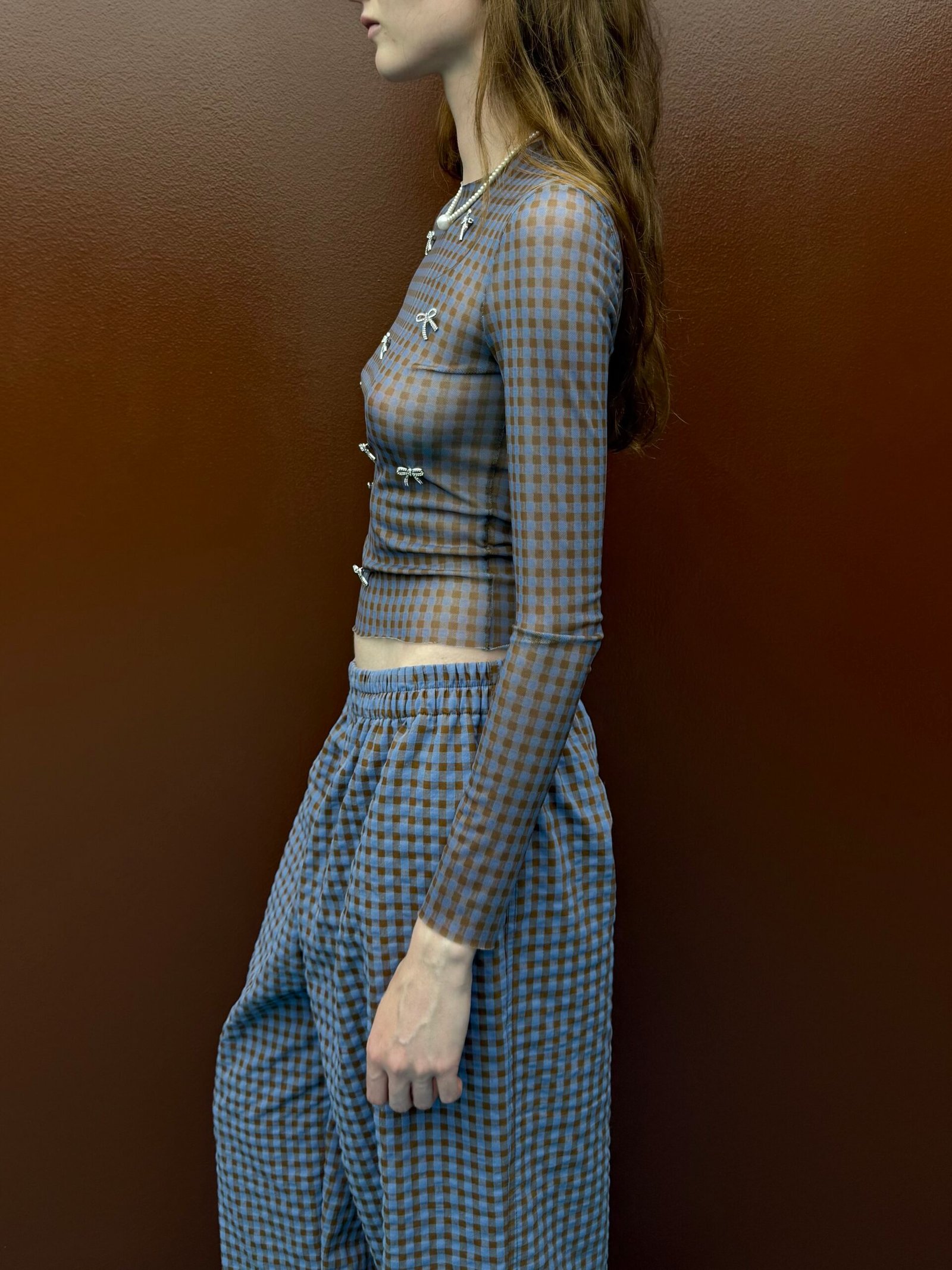 Τransparent top with crystal bows (blue-brown)/Milkwhite μπλούζα