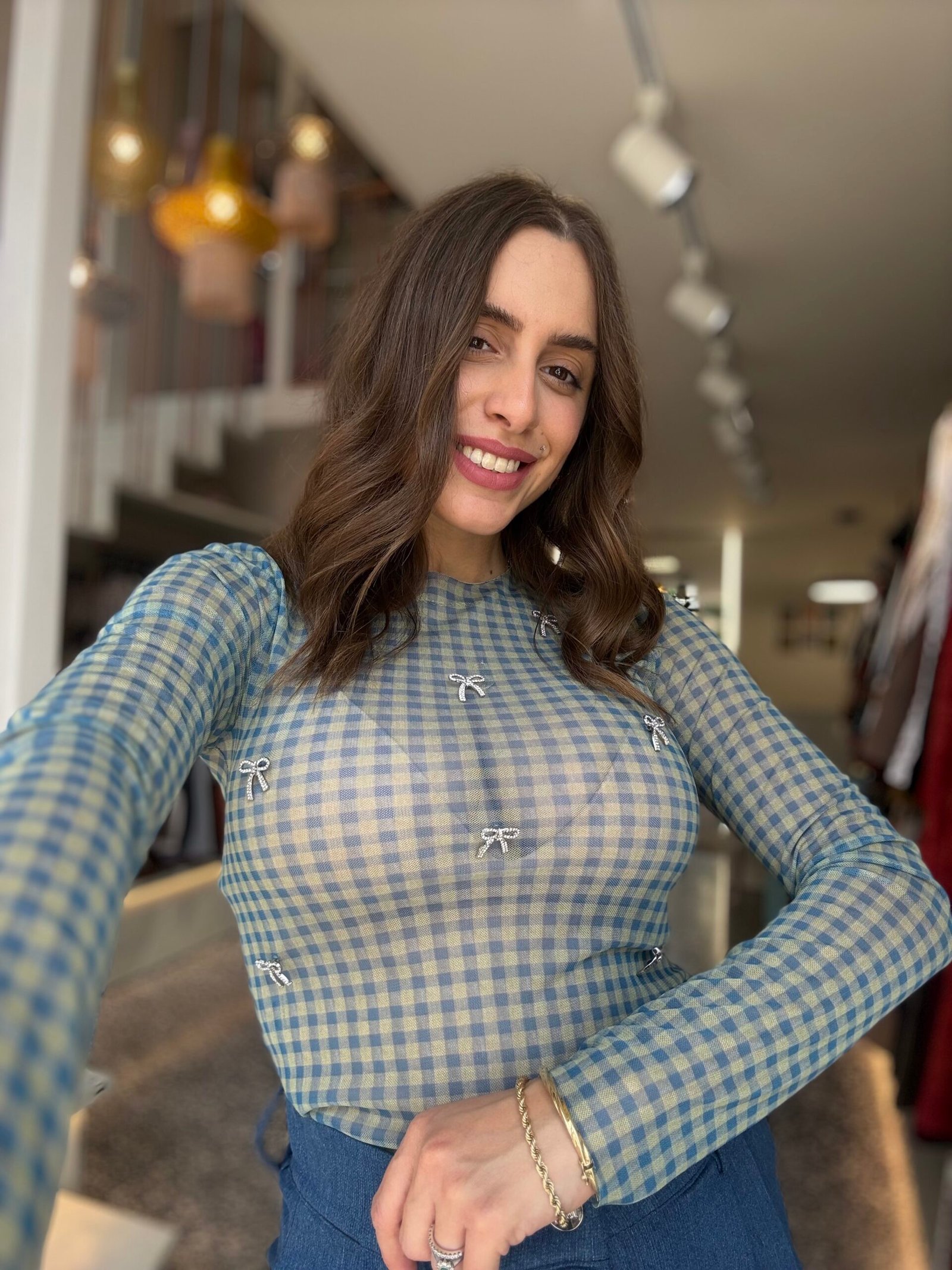 Τransparent top with crystal bows (blue mint)/Milkwhite μπλούζα
