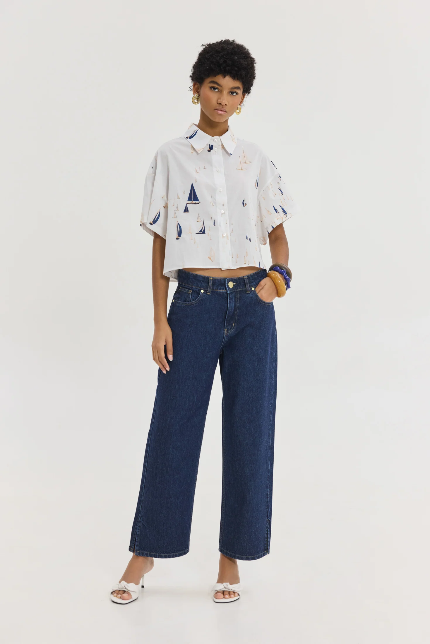 • Denim παντελόνι με σκίσιμο στον αστράγαλο