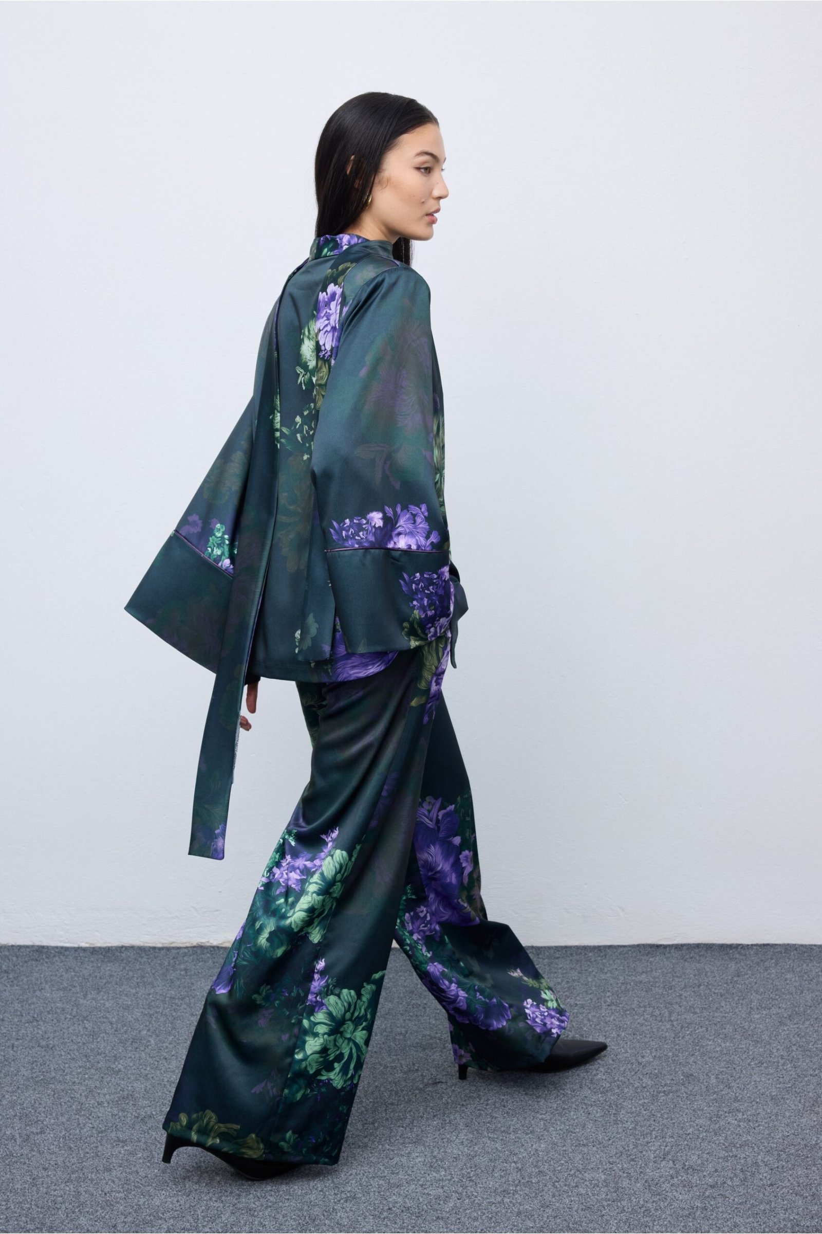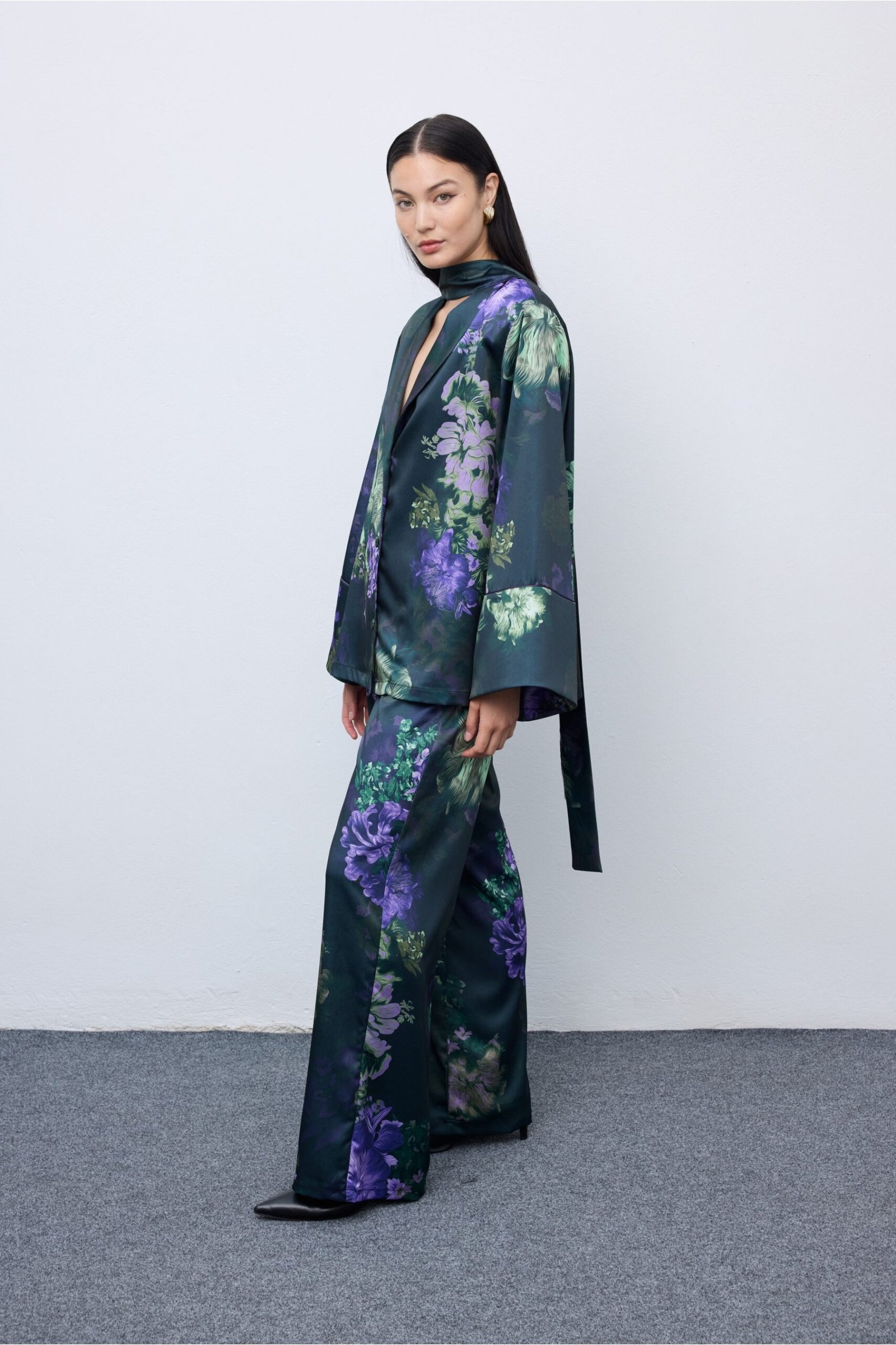 The Vittoria Pyjama Set blends fluid elegance with bold artistry – a true statement piece for every modern muse. Crafted from a soft, flowing fabric that moves beautifully with the body , this set features a relaxed silhouette, wide-leg trousers and a deep V-neckline for a touch of understated allure. Its floral print captures the spirit of freedom and modern femininity-perfect for both refined evenings in and elegant outings.
