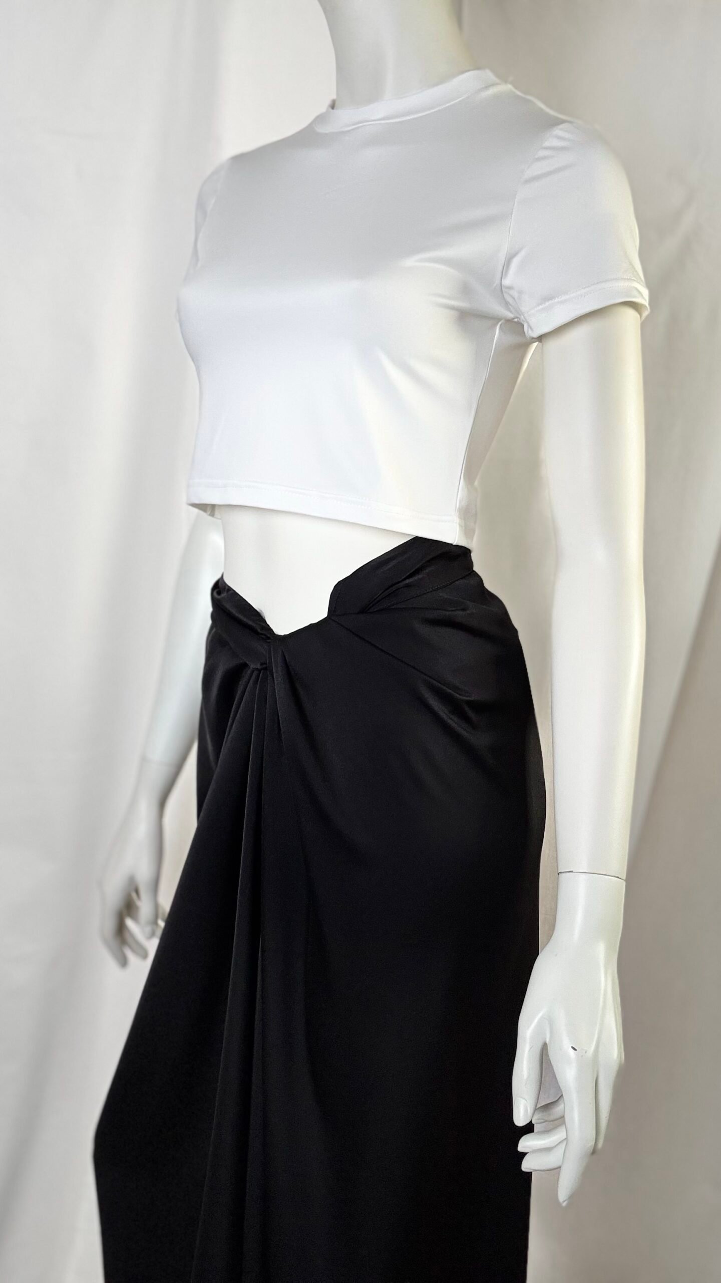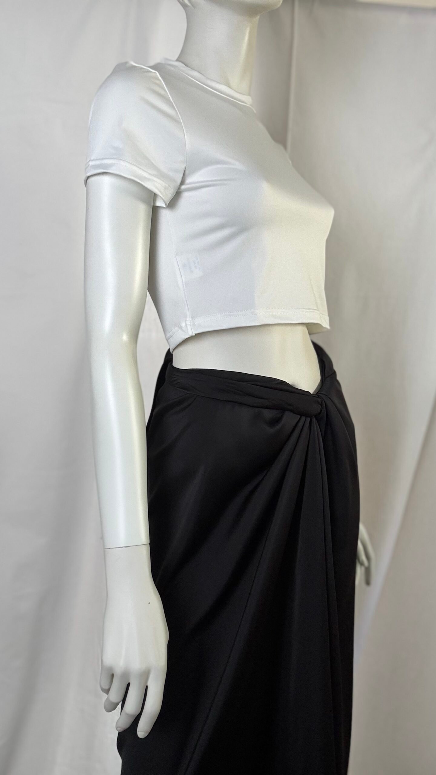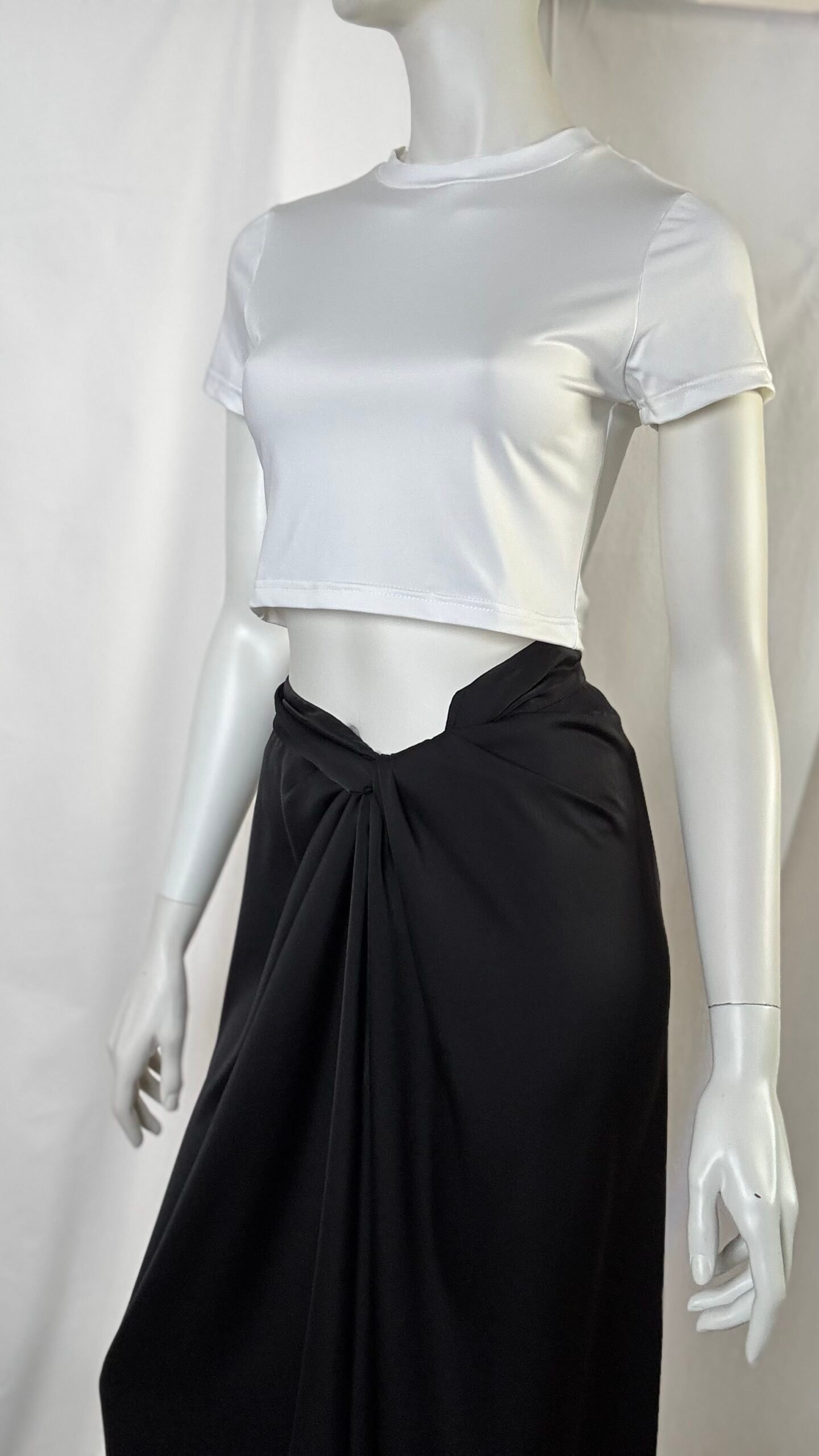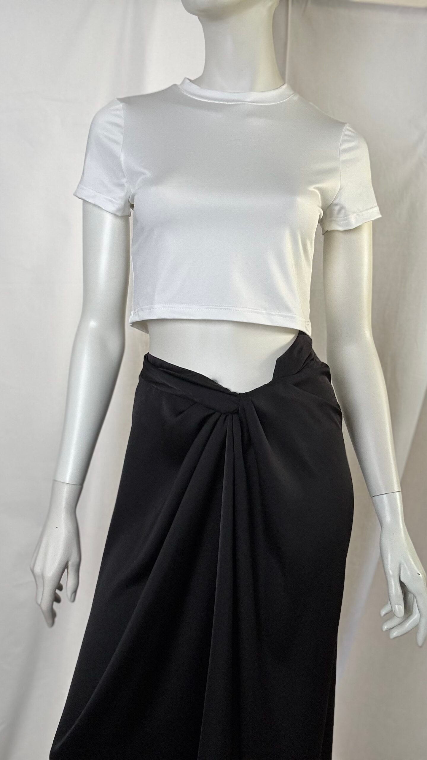 A modern essential by ckontova, this cropped top is designed in a sleek, body-hugging silhouette with a clean crew neckline and short sleeves. Crafted in a smooth, stretchy fabric for comfort and a flattering fit, it’s the perfect styling base, wear it with tailored trousers, denim, or layered under blazers and vests for a minimal, polished look from day to night.
