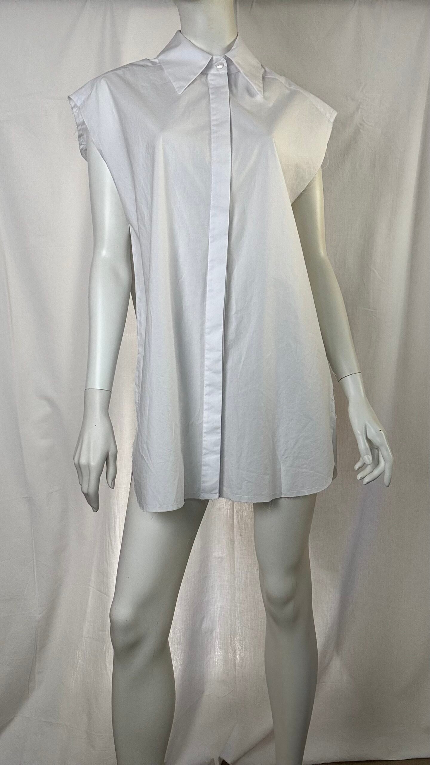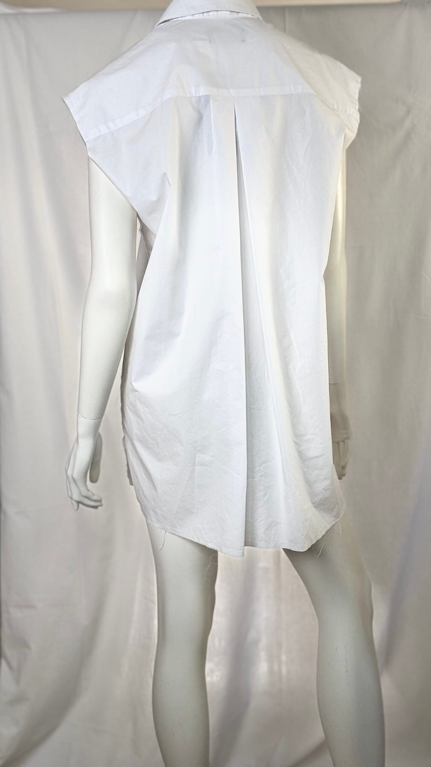 A modern wardrobe essential by ckontova, this sleeveless shirt dress is cut in a relaxed, straight silhouette for effortless day-to-night styling. Featuring a classic pointed collar and button-down front, it’s finished with a smooth, lightweight feel and a clean mini length. Wear it on its own with flat sandals, belt it to define the waist, or layer it over trousers for a contemporary, oversized look.