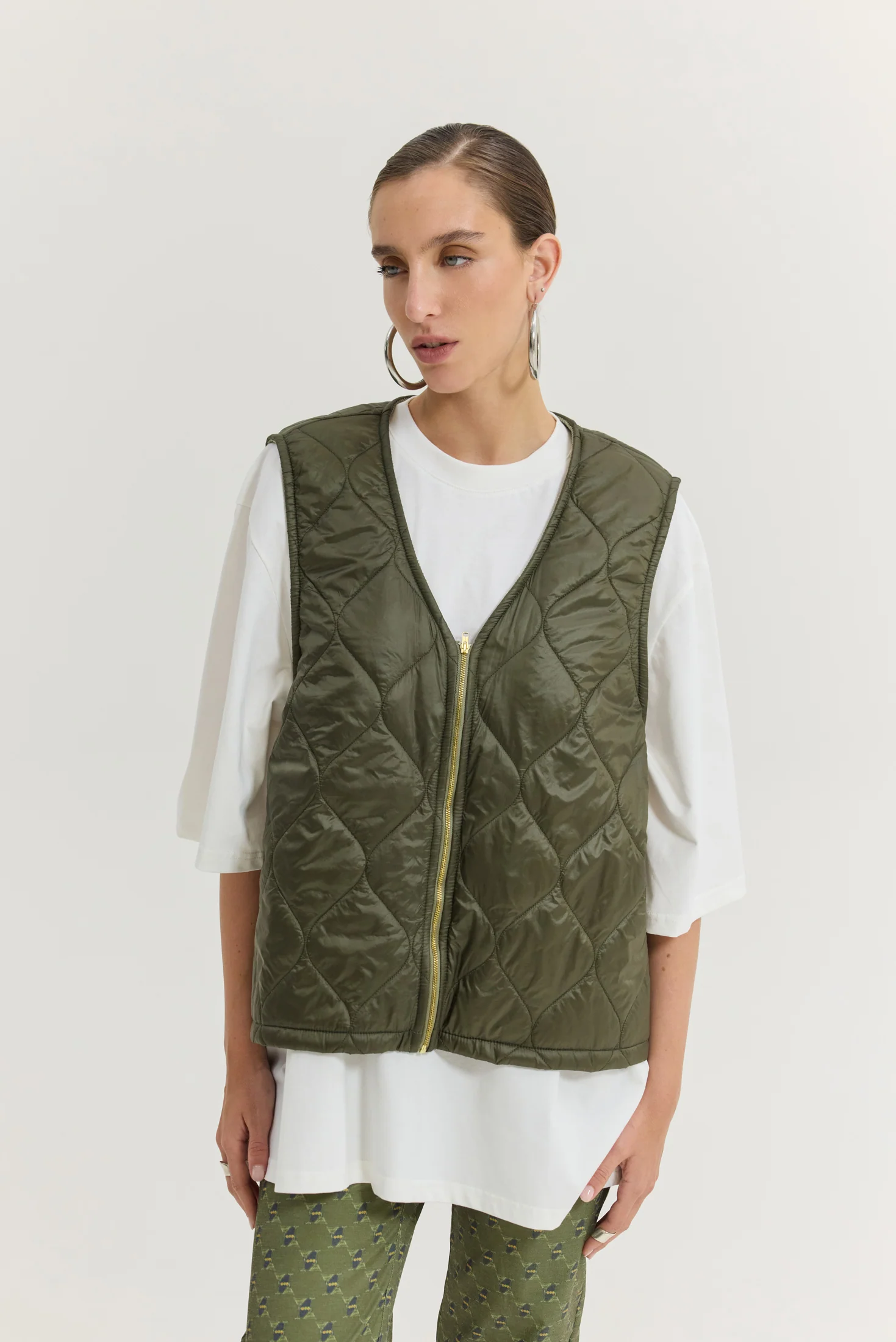 • Εσωτερικό χακί γιλέκο καπιτονέ που κλείνει με φερμουάρ και αποσπάται
